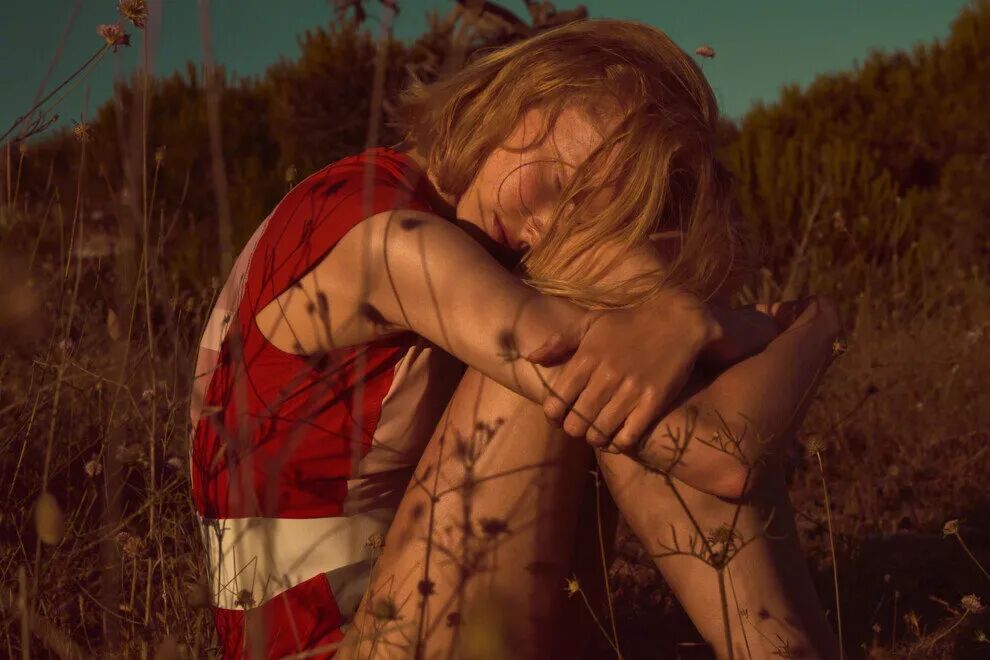 光影让照片不再单调,简单的动作,哪怕只是漫不经心地坐着/站着/躺卧在草丛里,在光线的映衬下,照片美好得令人沉沦其中。