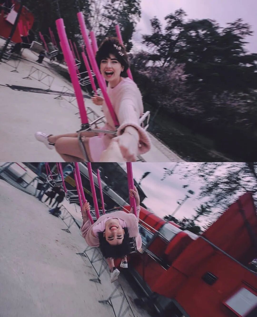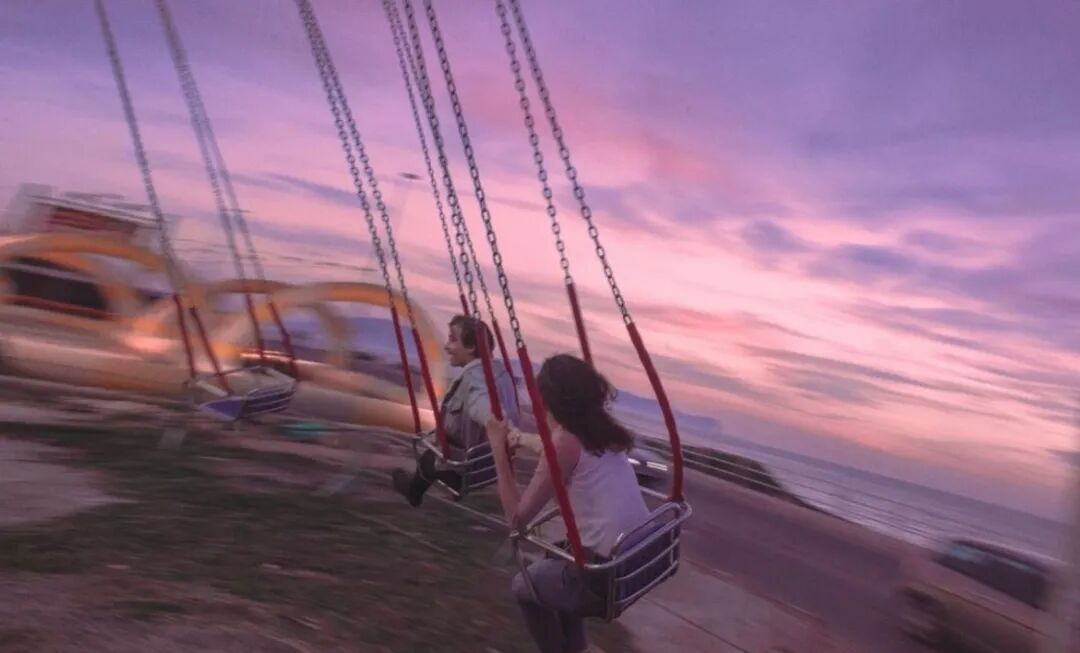 在游乐场的霓虹下