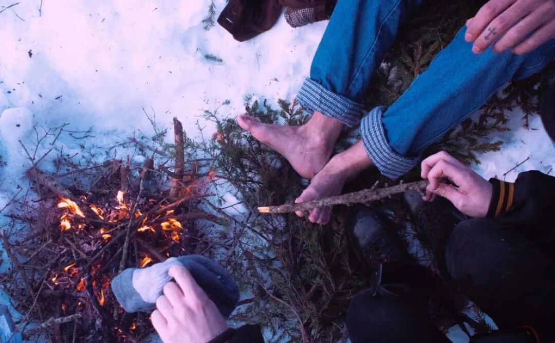 在篝火边取暖