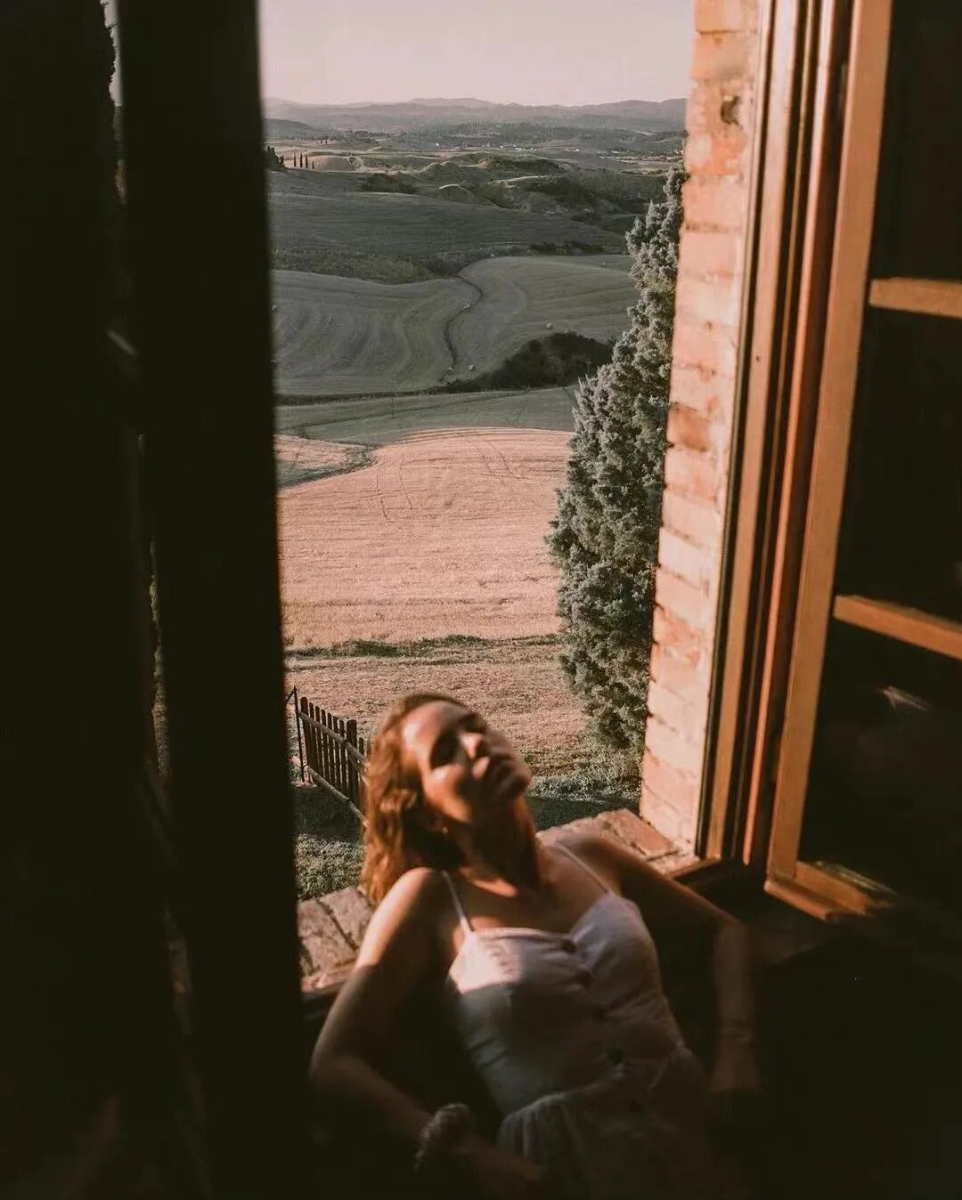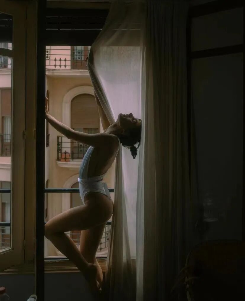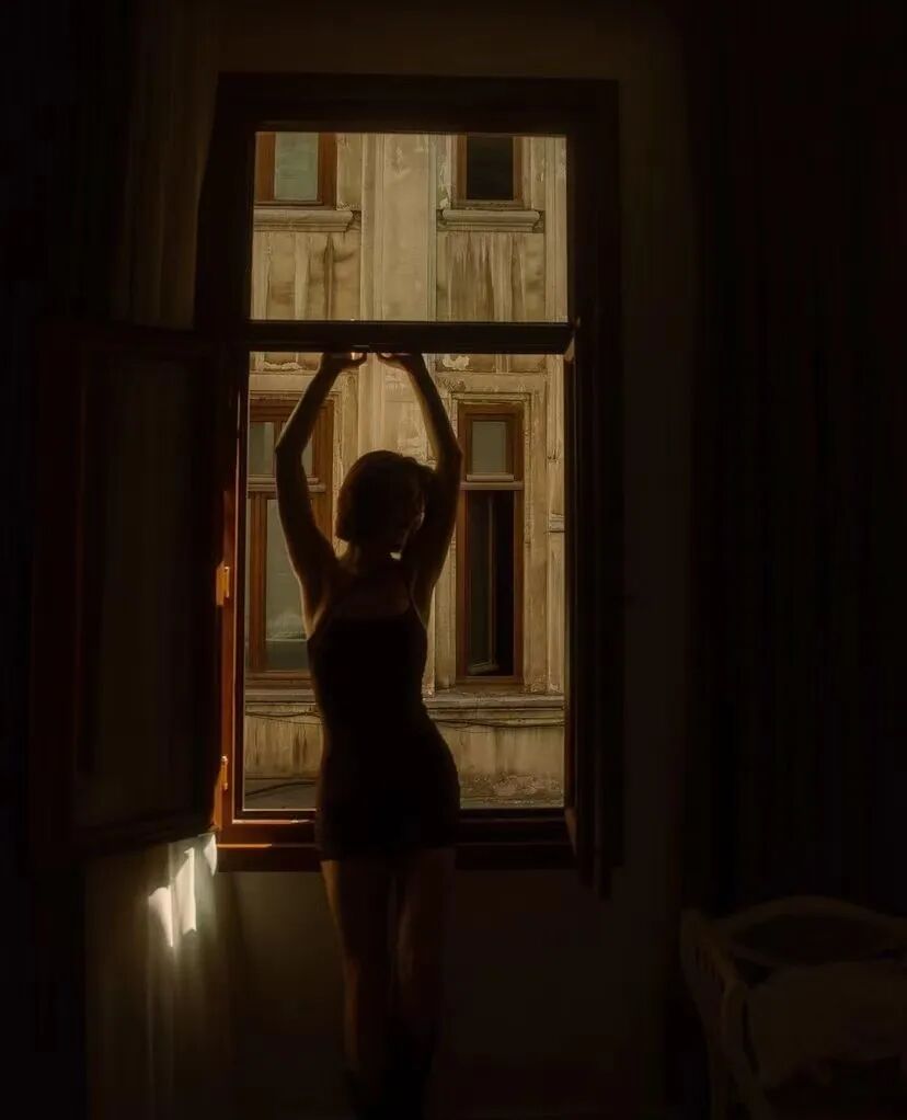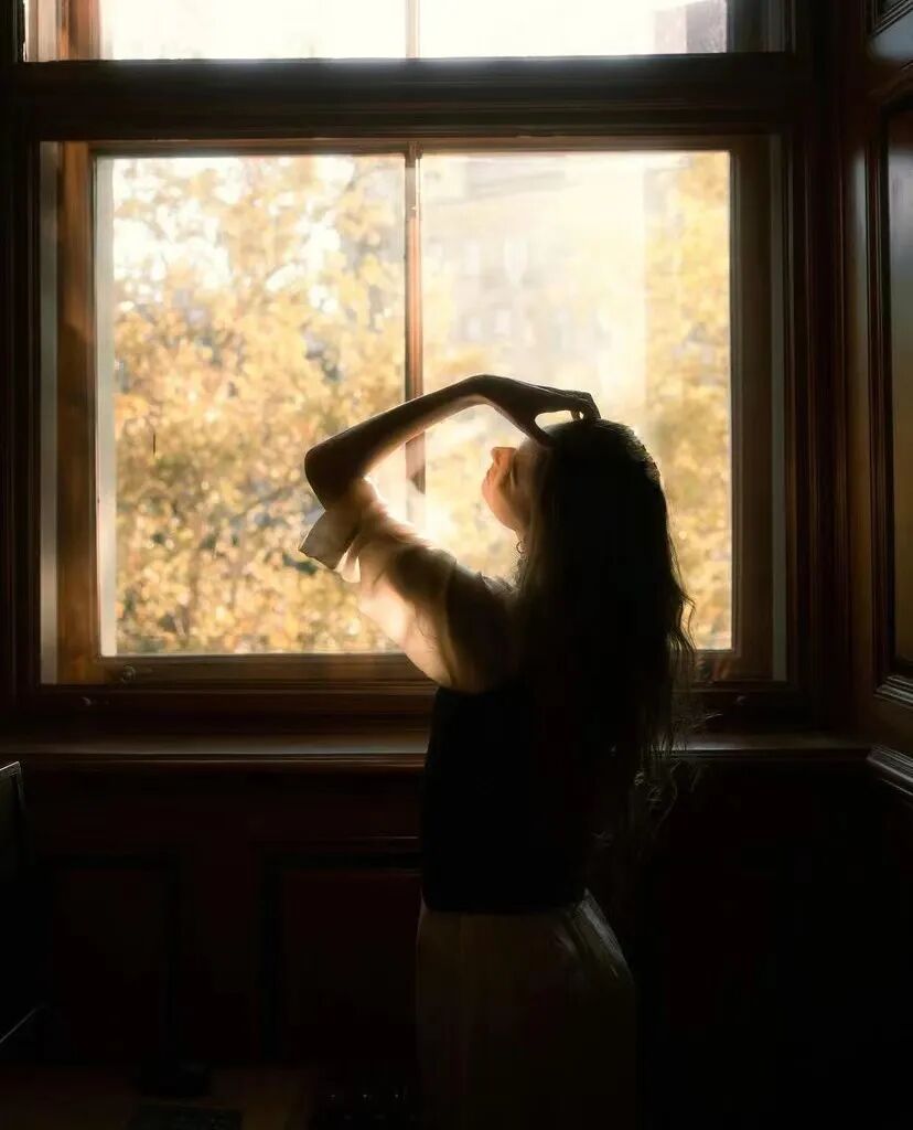 靠在窗台、站在墙边、趴在桌上