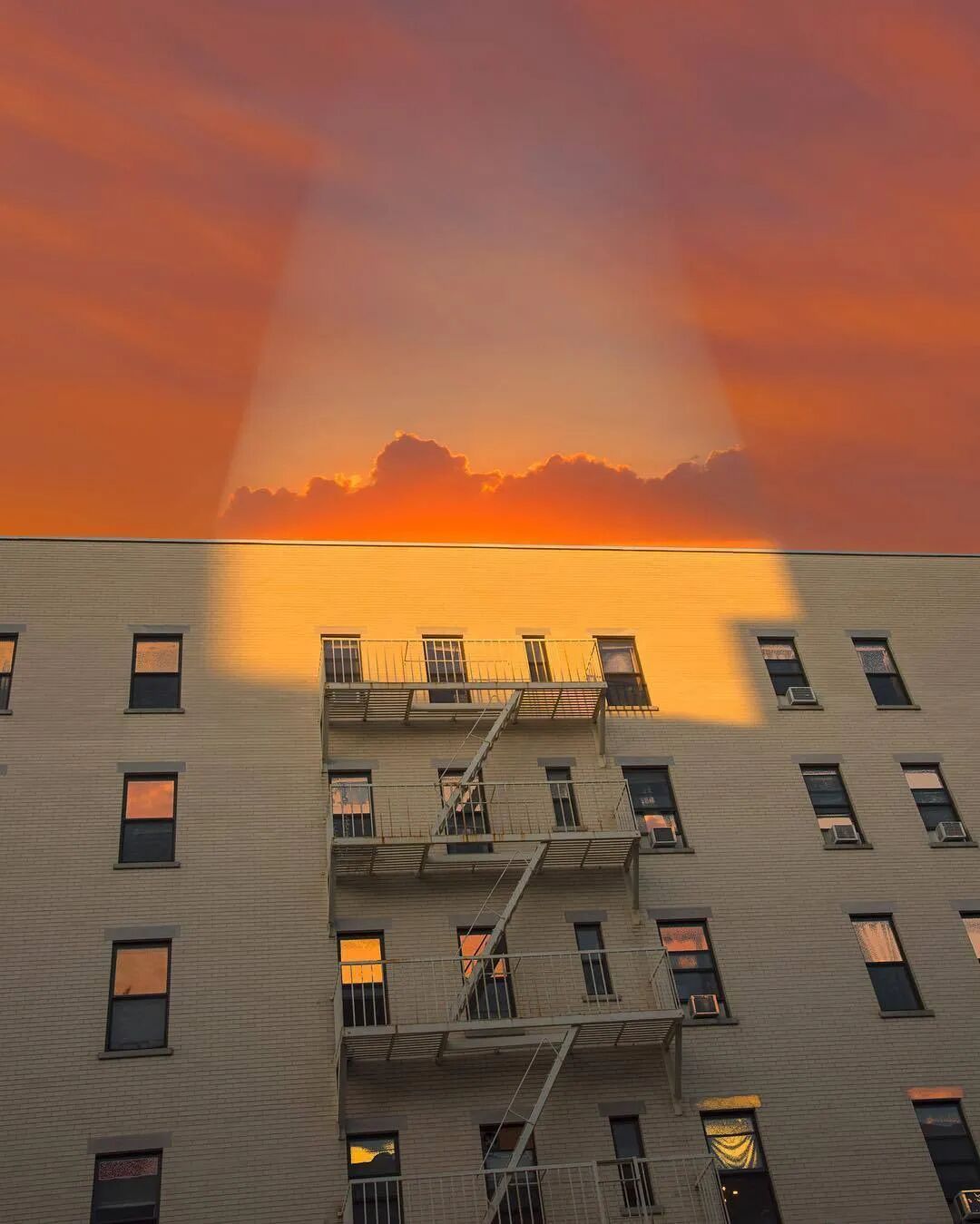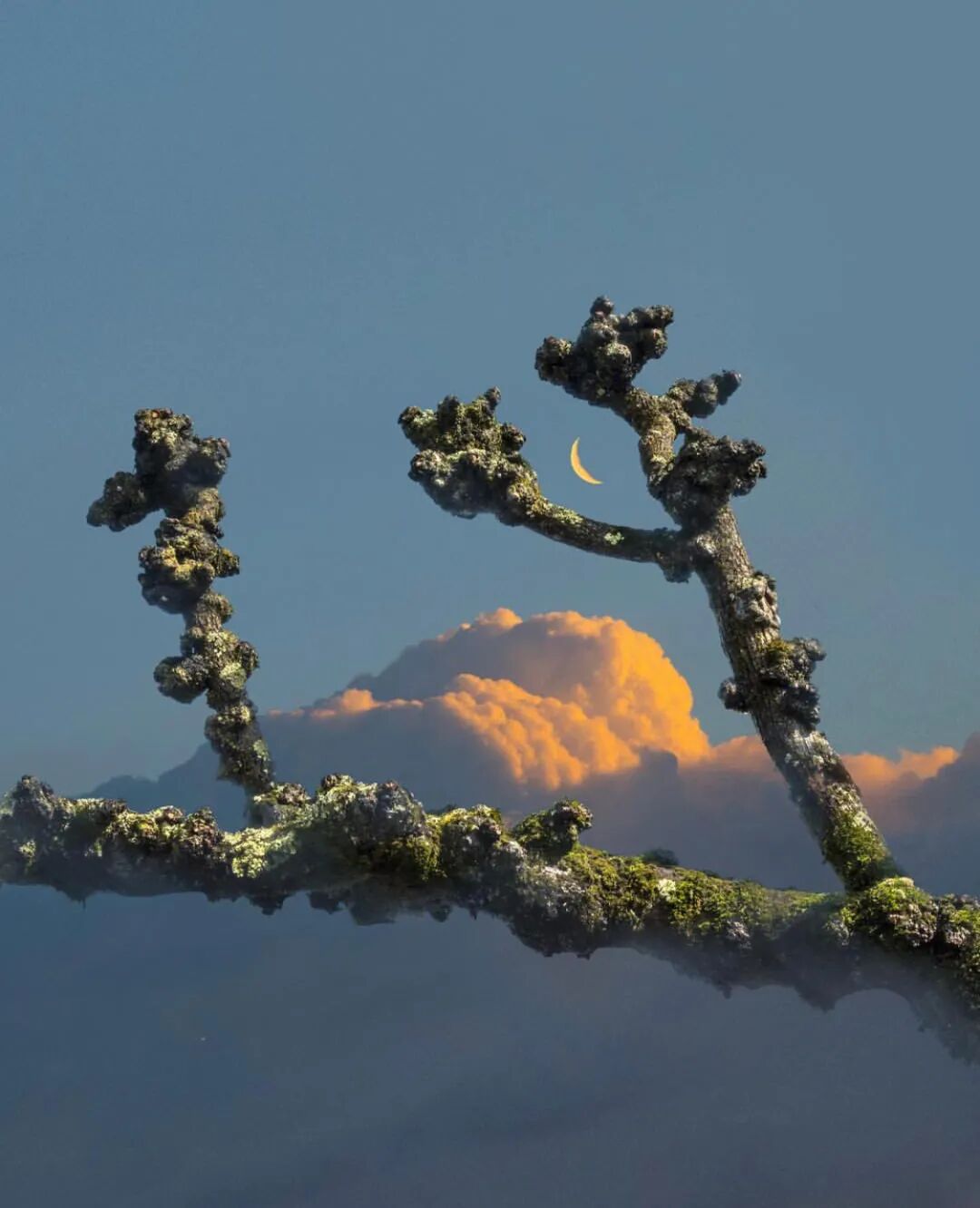 没错,这位摄影师许多作品大多是拼贴而成的,她十分擅长用 Ps 技术把天空&云彩融入身边的风景,加工后的照片有种超现实的美。