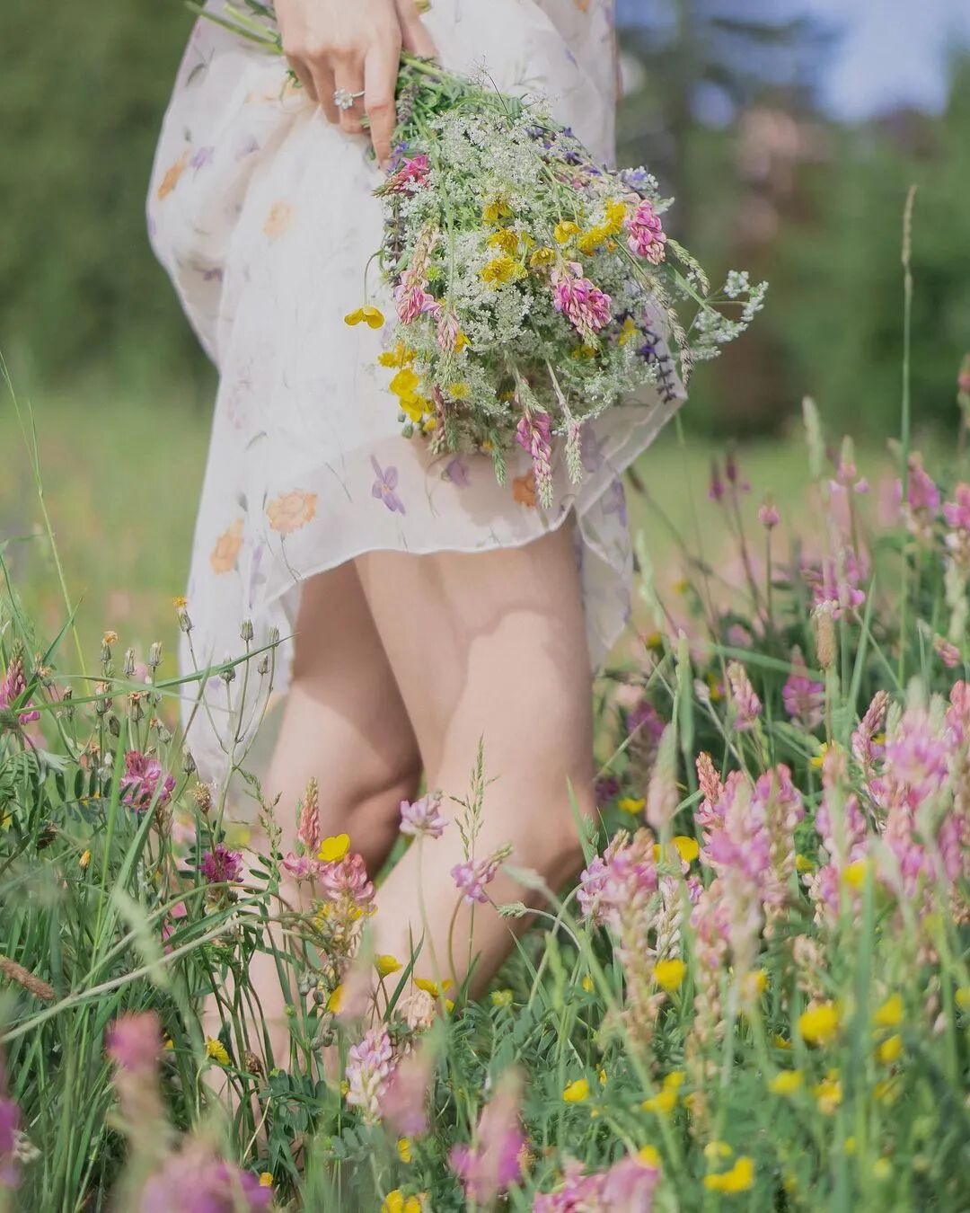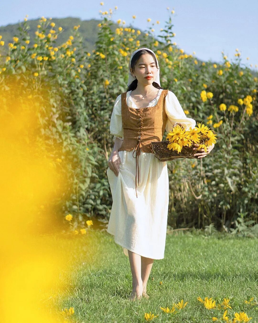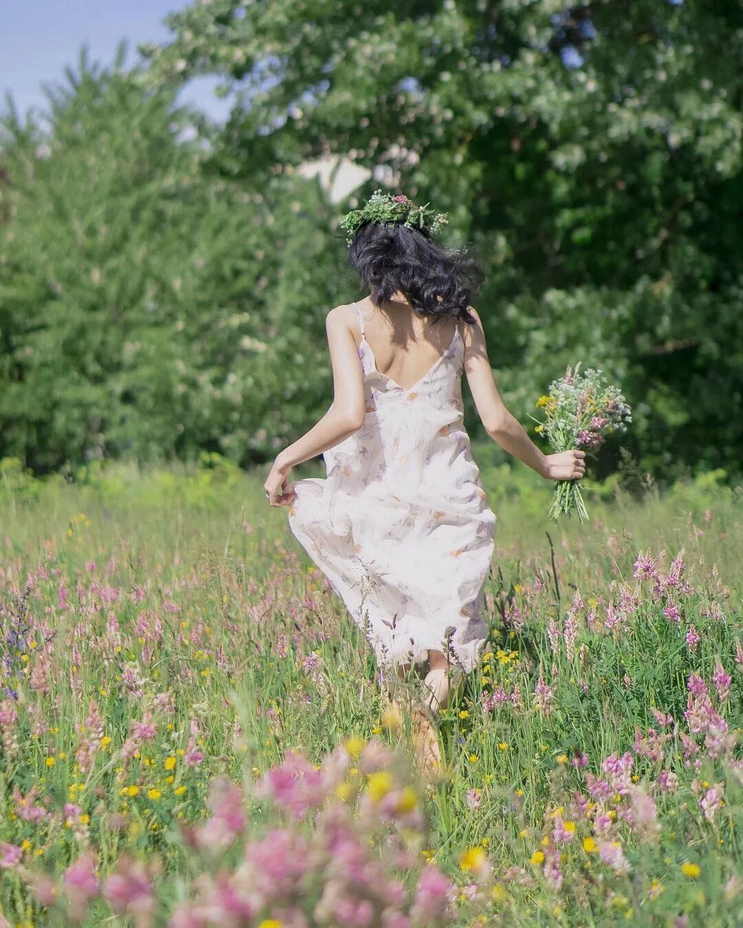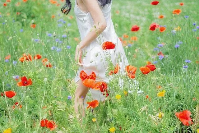 在花海中奔走的场景