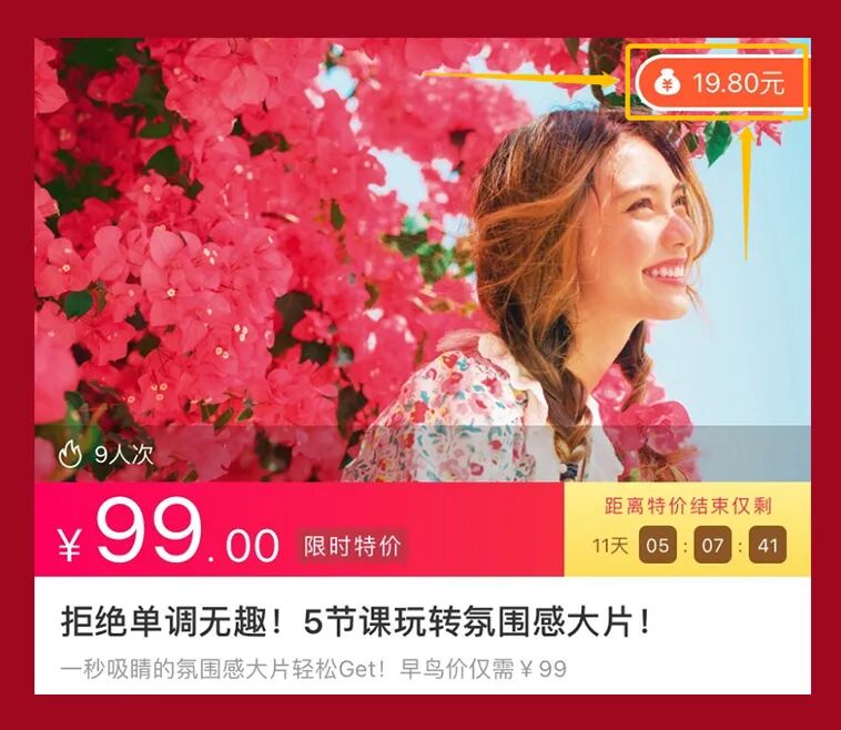 内容超值:5节干货课,玩转氛围感美照,只需99元,超高性价比!