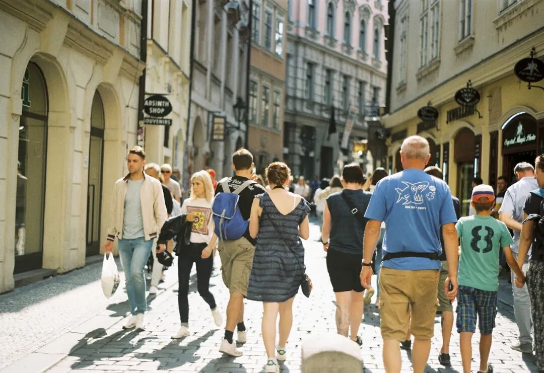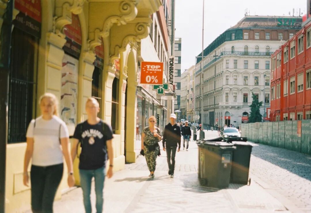 在布拉格的这一组,燕子便是跟着街上的人群行走,在所经之处轻轻按下快门,然后时隔很久,再从口袋里找出当时的胶卷,扫描出来。虽是普通的记录,但照片背后的这份希望抓住旅途动态的心情,才是最引人共鸣的。
