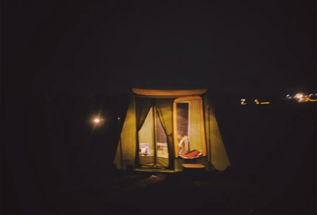 这些支在星空之下的帐篷们,在夜晚便会点起温暖明亮的灯,甚是浪漫 ——