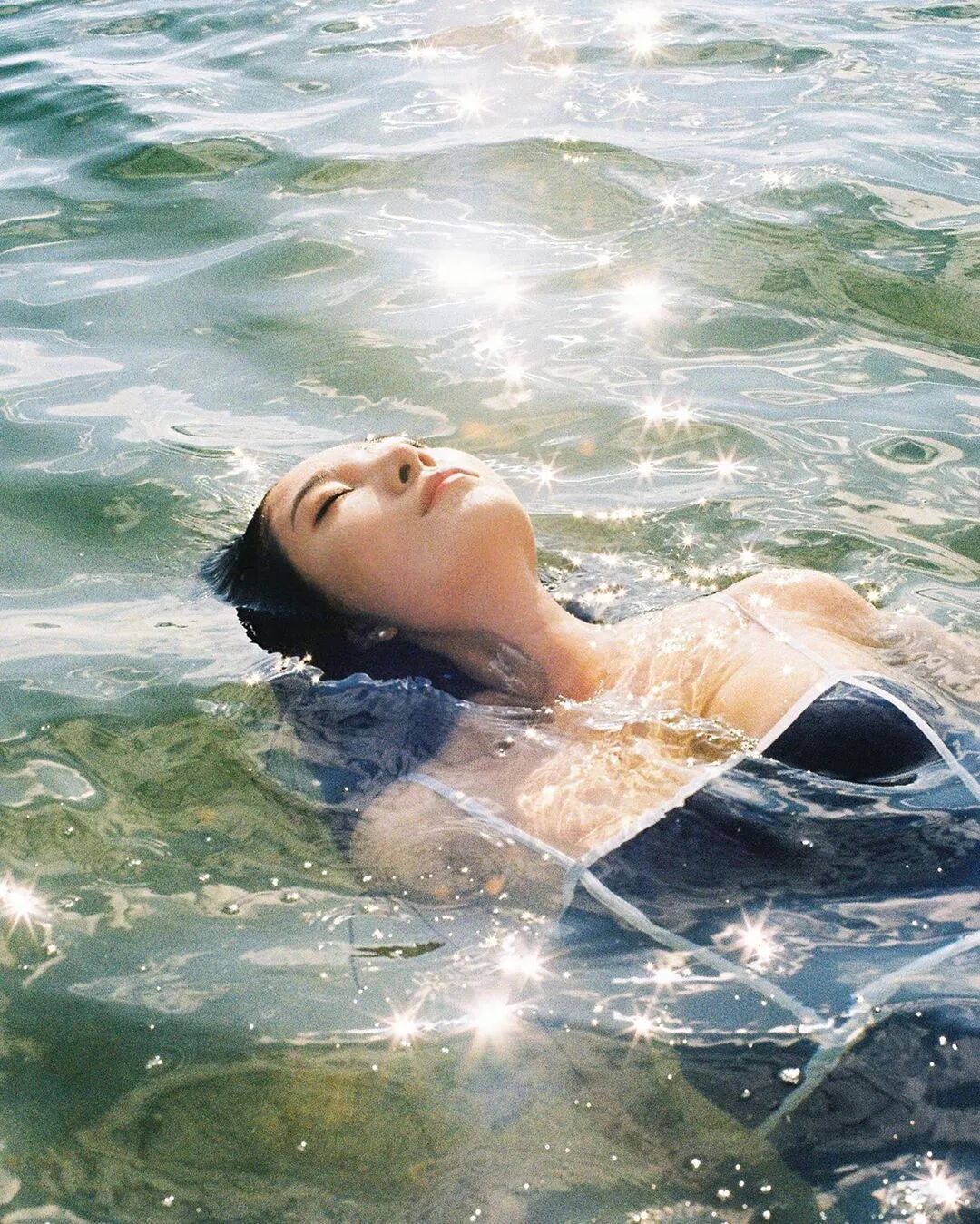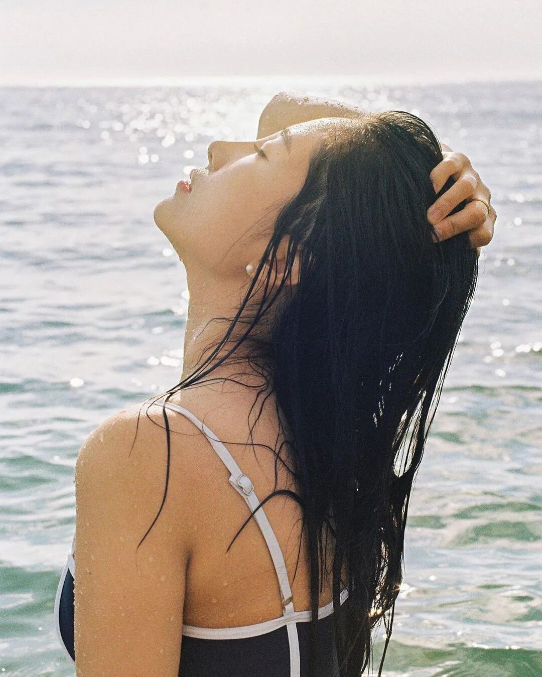 披散的发 荡漾的浪花