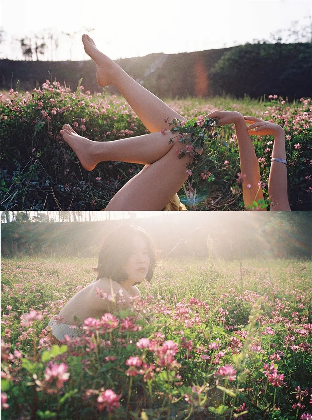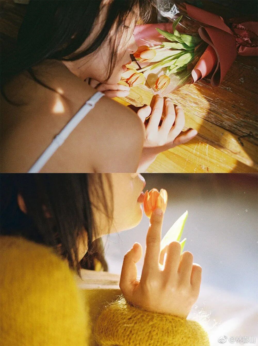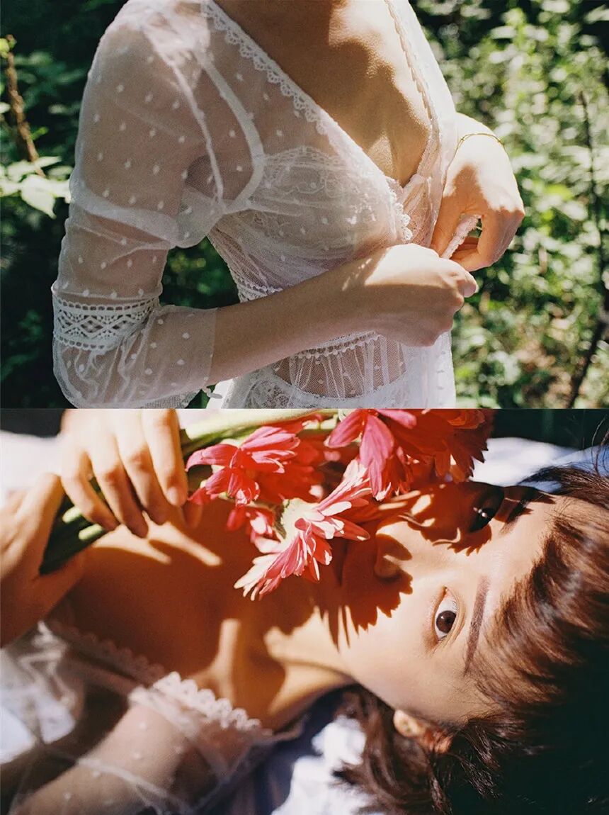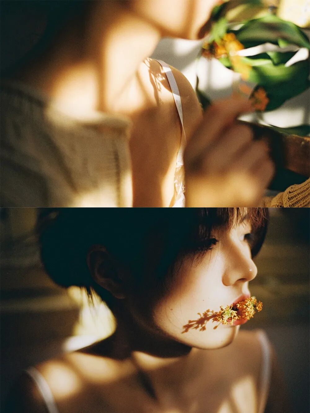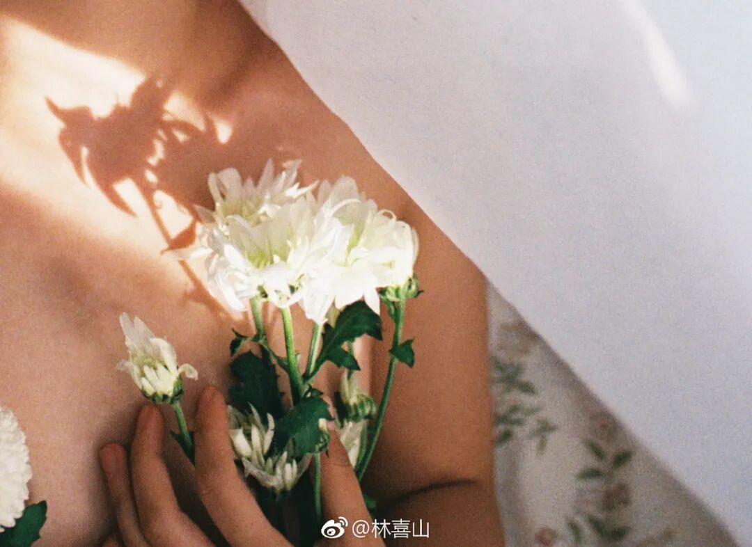 无需露脸的身体拍法,光恰到好处地照射到局部,辅以鲜花点缀;如此的简单、干净、纯粹。