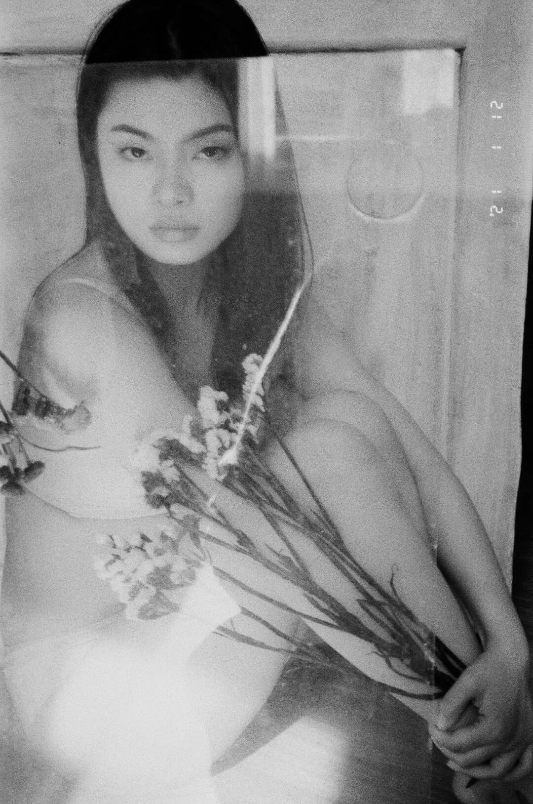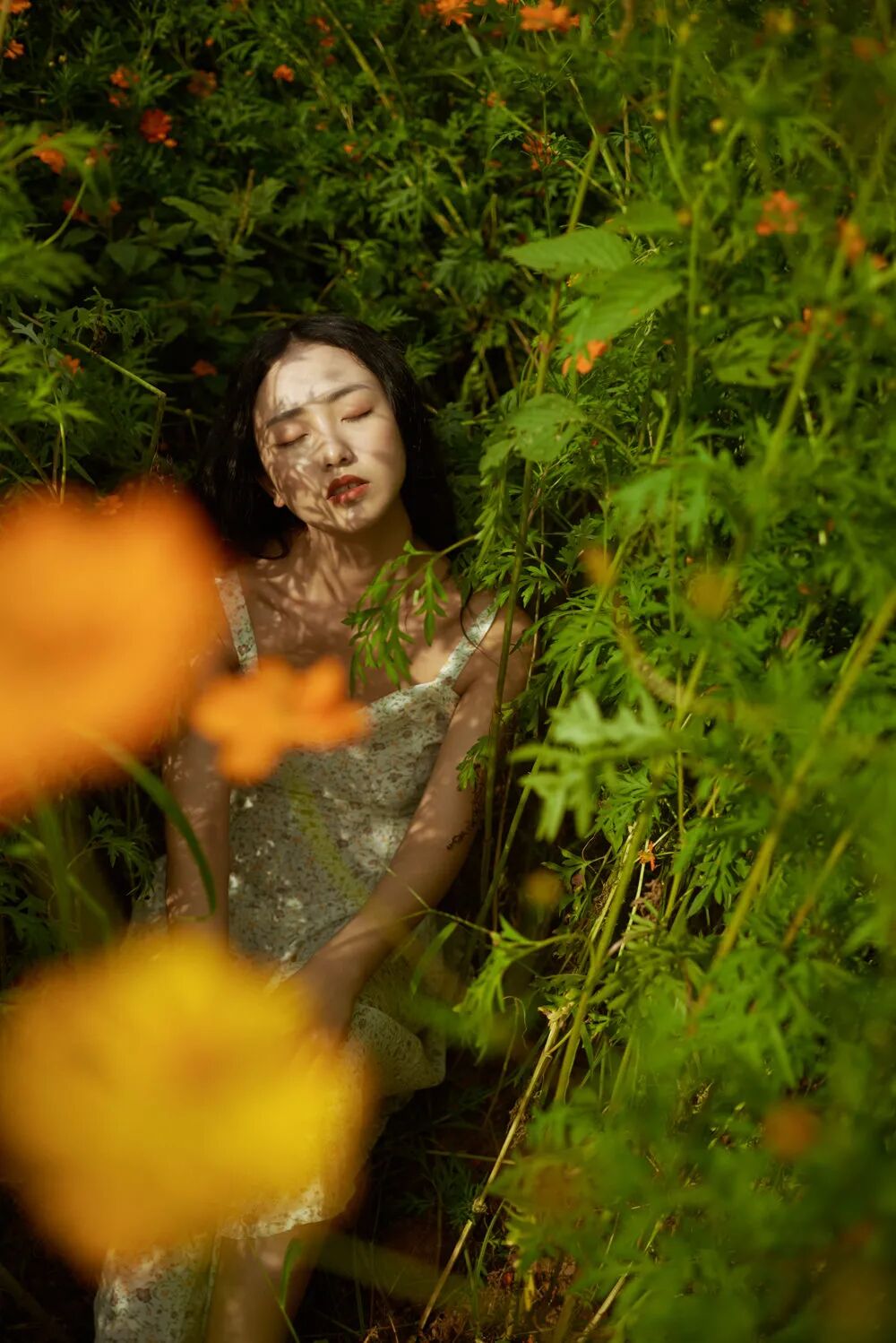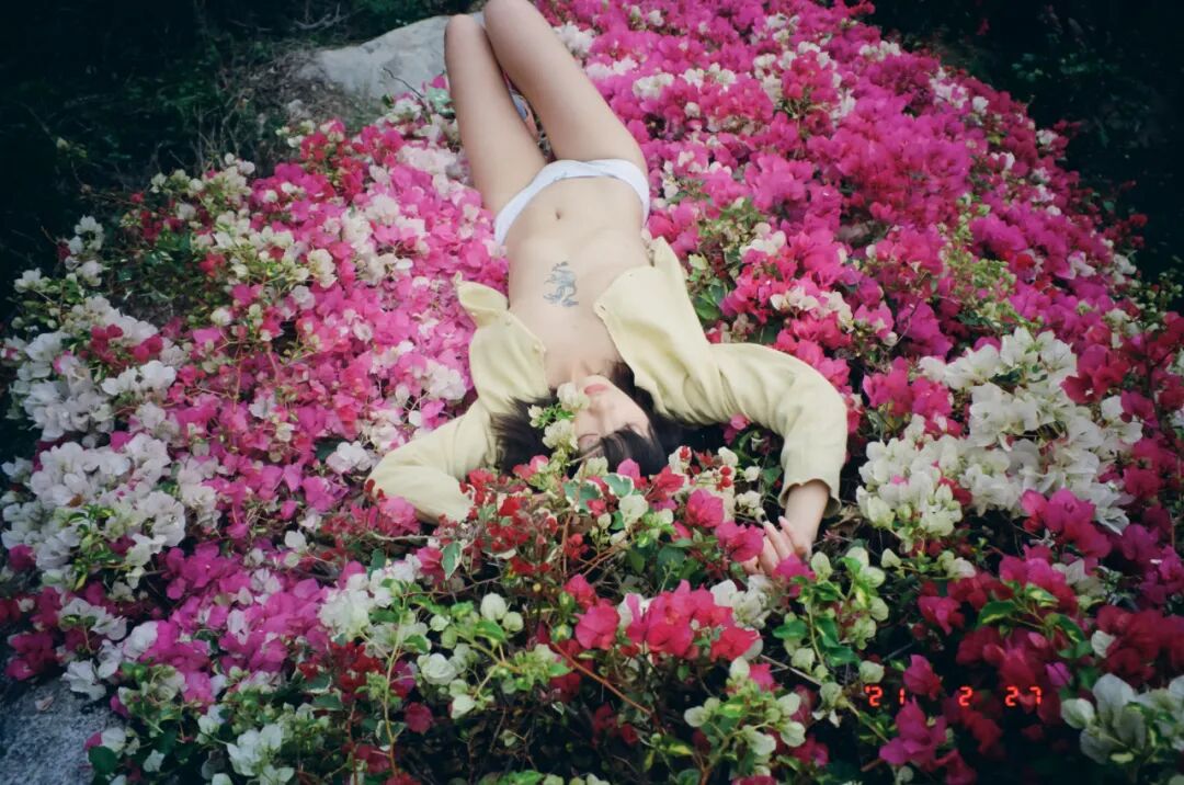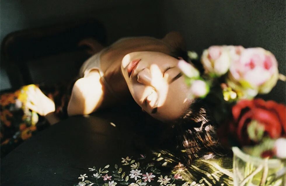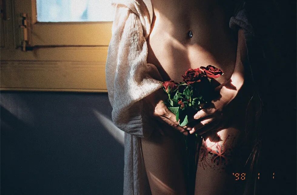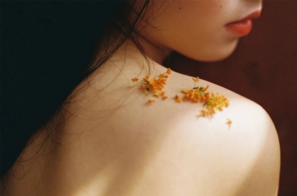 无需露脸的身体拍法,光恰到好处地照射到局部,辅以鲜花点缀;如此的简单、干净、纯粹。