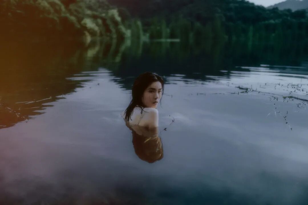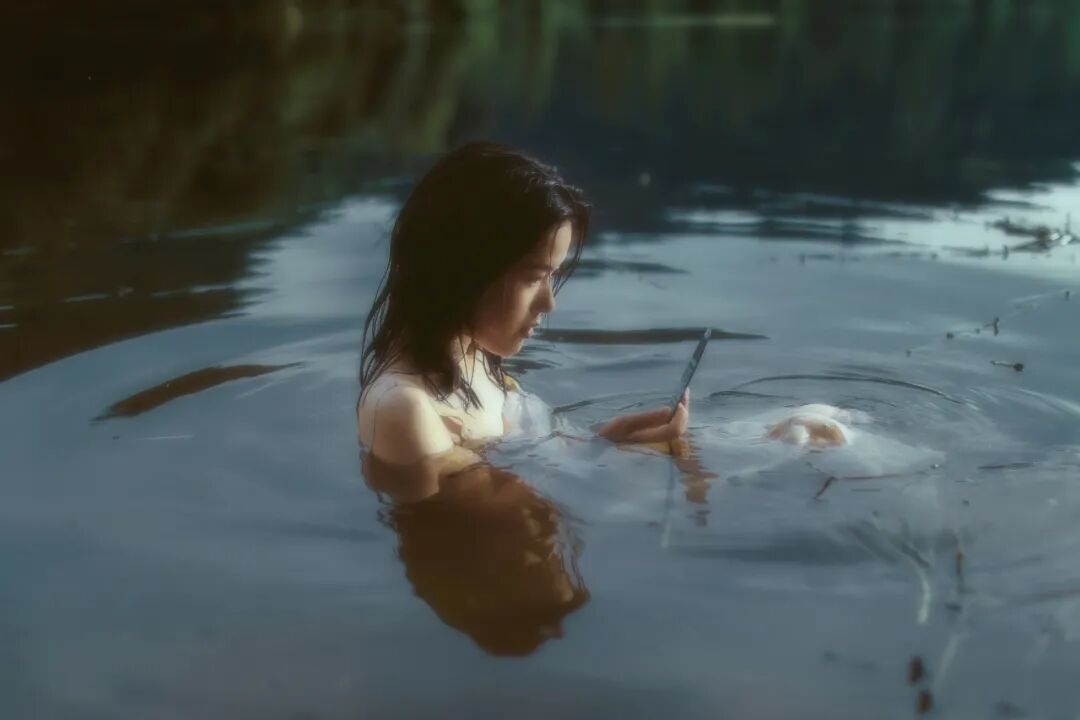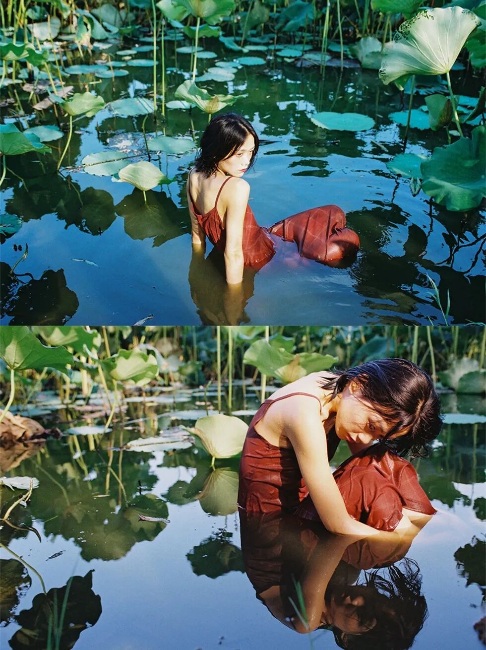 她想表达女孩们的情绪,并不直接对准她们的表情;反而是来到像花丛、水边这类自然的、毫无修饰的地方,拍摄被水环绕的身体,被水打湿的头发 ——