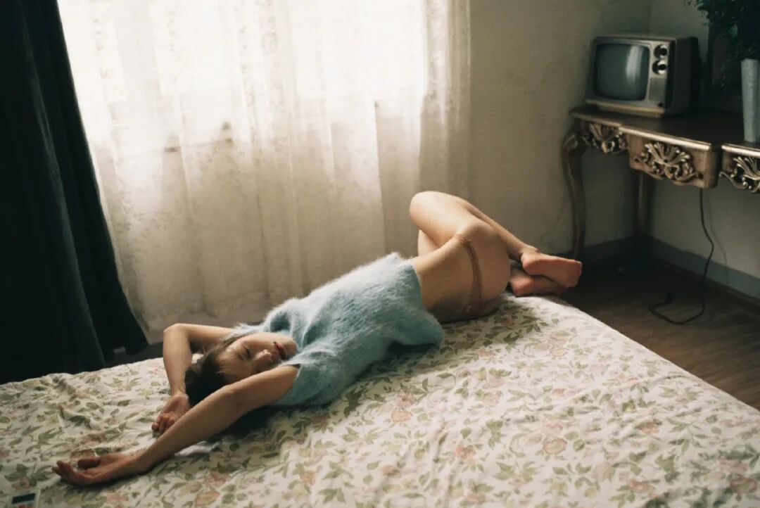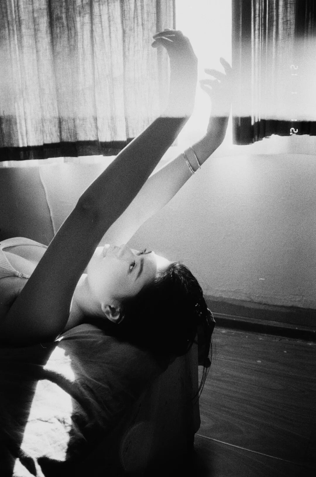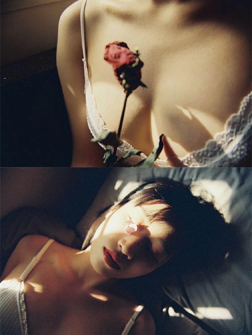 光影加持之下,触感,也是她作品里的特质。只有身体的舒展与表情的记录,远不能达成私房的意义。私房的拍摄,应是一场与自己的对话与互动。