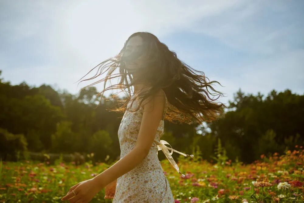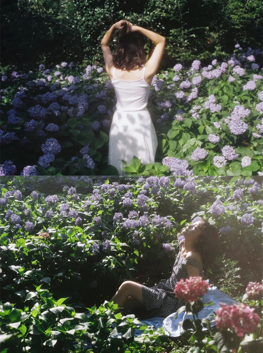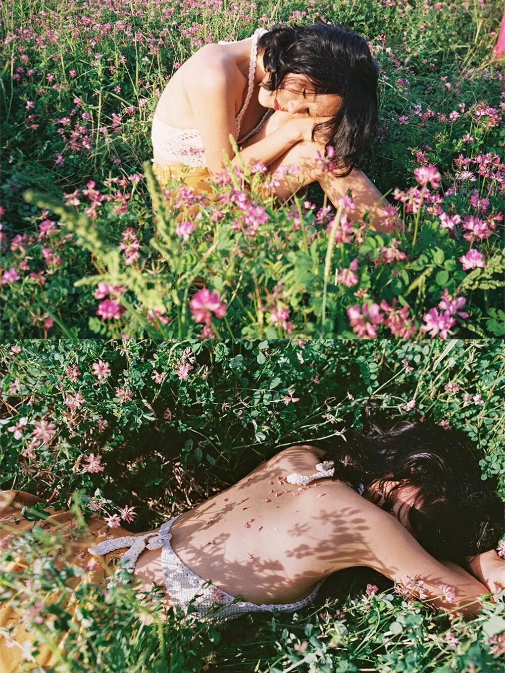 让女孩们的身体肆意地与鲜花接触,然后记录各种生动的瞬间,奔跑着、旋转着,迎着风、朝着光。