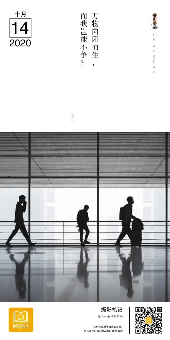 等待、启程背景: 临时出差,初到郑州东站,发现候车厅巨大的玻璃幕墙搭上楼外两栋大型建筑,有一种特别的科幻感和电影感。大空间与小个体形成一种冲突感,再加上高铁候车厅特有的嘈杂与匆忙氛围,感觉有机会拍到不错的画面,于是架起相机等人。前期: 低机位压缩地面,逆光形成剪影,向右曝光保留窗外细节,连拍模式抓拍有趣瞬间。后期: 由于天气为阴天加雾霾,自动白平衡出来的画面发黄发绿,难看又不好处理。于是后期处理成黑白,简化、统一颜色,突出主体。