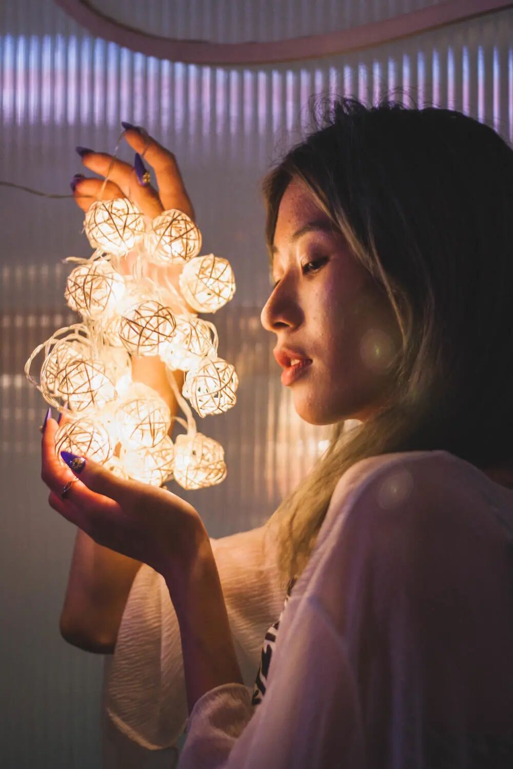 这是在大唐不夜城那边玩的时候拍的照片,小姐姐没有化妆。我们当时找不到很好的光,于是用藤球串灯作为光源给脸上补个光,光色也很棒…求校长翻牌子!熊猫也无妨!小姐姐得分比总分高我也能接受