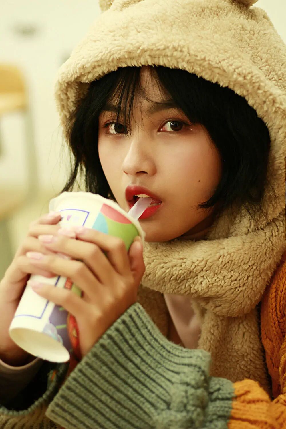 然后说说你要的风格。首先啊,我觉得发型稍微有点乱。不过还好。然后取景范围稍微有点小。稍微加一点点,给上面和左边。这样一方面姑娘的手出来了,另一方面整体也不会这么偏靠上。一点点就好。