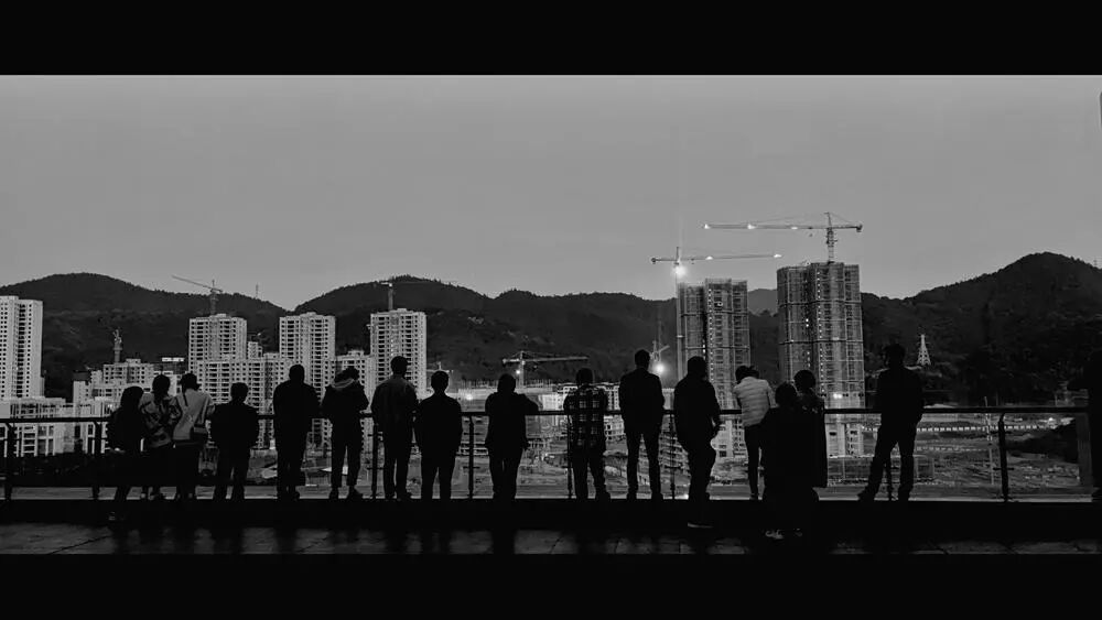 晚6点半的加班餐,来早了几分钟食堂还没开门,同事们就聚在门口平台望远,顺便呼吸下新鲜空气。用手机抓拍了张,看了人物剪影效果不明显,后面还想走近低角度拍一张,结果开门了没来得及。用手机app裁剪了一下,调为黑白,人物调暗。
