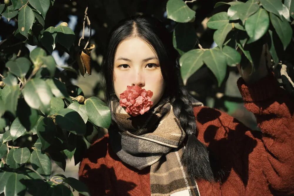 首先啊,你这个场景设计就不够高级。油光光的叶子,没有高级感。姑娘的穿戴以及嘴里叼着一朵花……其实你想要高级感大可以模仿开始。多看看时尚杂志封面。《vogue》一类的。