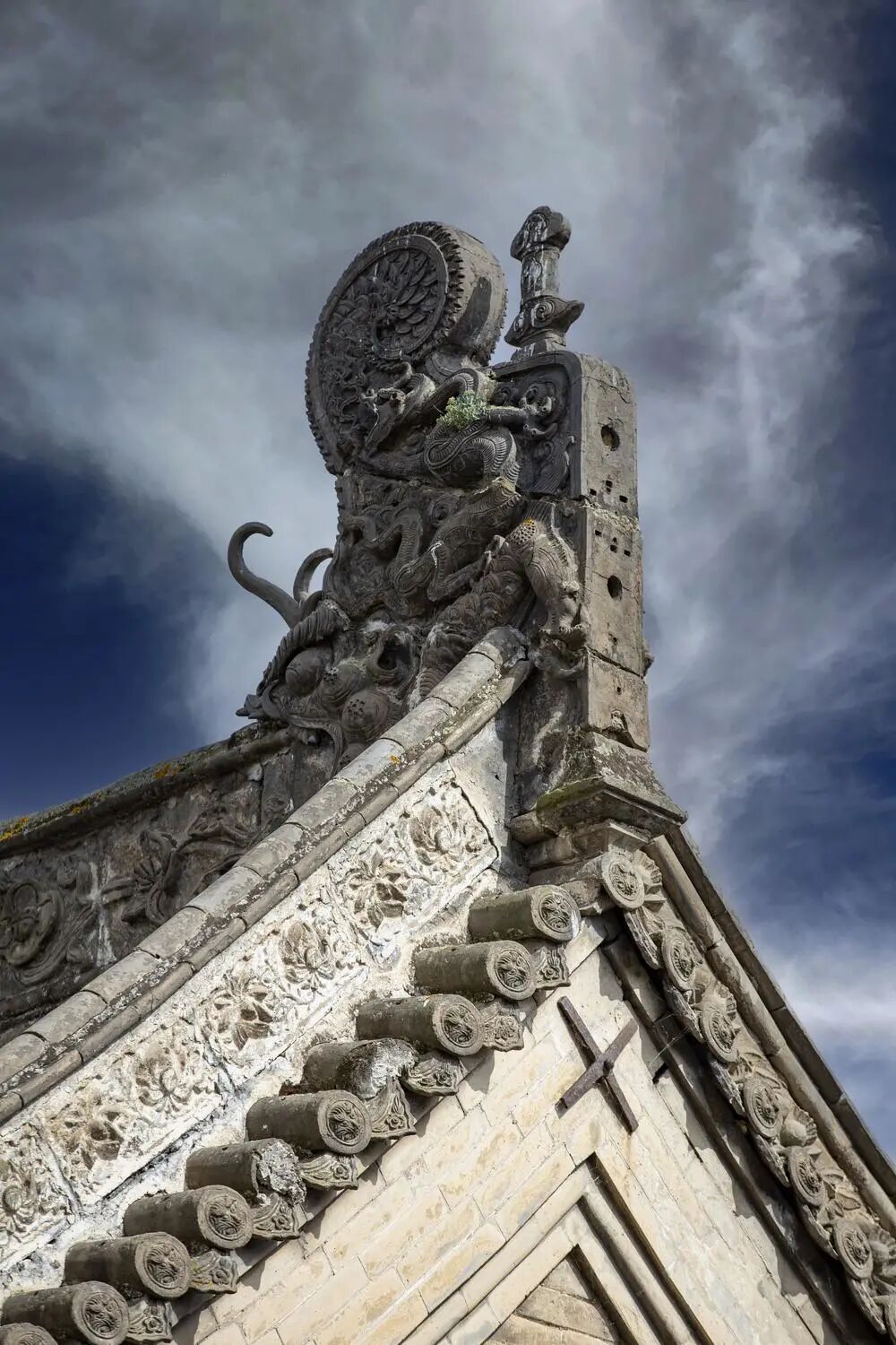 点评:赶上天气不错。房顶上这个是龙的儿子。叫鸱尾,好吞,可以辟火。
