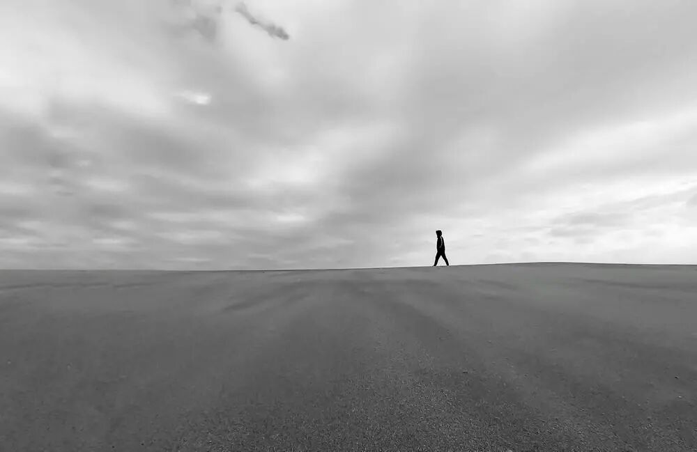 周末骑行去海边看到一个沙堤,就想拍一张极简孤寂的照片,用三脚架架好手机自己在前面走拍了一个多小时总算有些感觉还可以的。后期增加了点对比度,调成黑白的,抹掉一些污点,扩大左边的画幅让人更偏右点