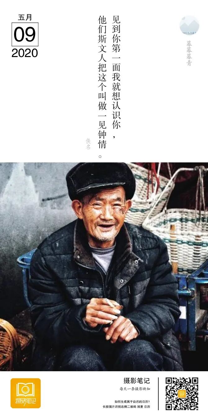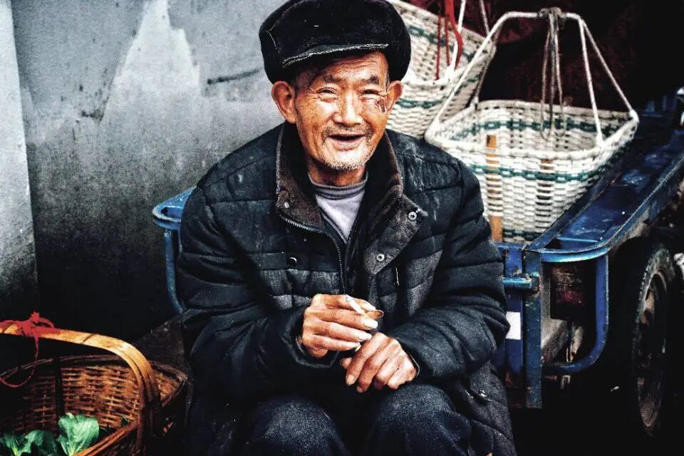 前些年的冬天,在一个老菜场的门口拍到的这位老人,当时远远的就注意到了他,一个人面前没多少菜躲在这个角落里手里拿着一支烟,但没有抽,一个人看了前方来来往往的人很久很久,我走过去和他攀谈,和他聊生意这怎么样,儿女现在如何了。大约是很久没人同他这么讲话了,谈到后面他有些开心,这个时候我我按下的快门,拥有了这张照片。后期方面对色调进行了调整,压暗了背景,让那美好的一笑与他所处的环境形成了鲜明的对比。后面我将这张照片处理了另外一个版本,突出优化了人像,将洗出来照片送给了他。不知道如今老人如何了,但愿他的笑永在。