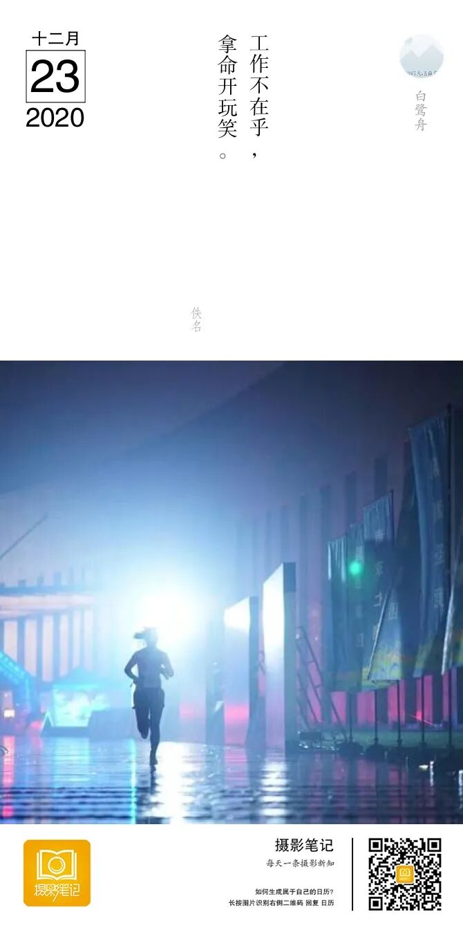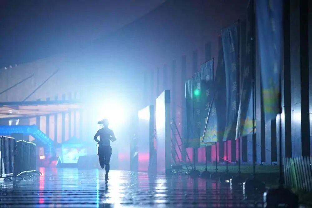 当时是一场24小时接力,天空下着细雨,光环境你懂了,围着赛道绕了几圈,终于找到一个适合用环境光拍摄的场景,拍了好几个人选了一个人物姿态不错的。要说缺点,背景光源太亮,如果我机位再低一点,或者人物再前进一点用头部挡住会更好一点吧。
