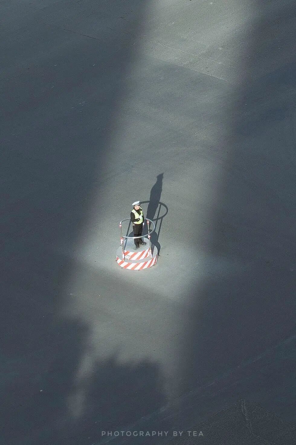 冬至早上起床帮忙祭祖的时候发现楼下执勤的交警与光影,拿起了相机记录。用的是50 1.4 二次构图了。因为在14楼拍的人贼小