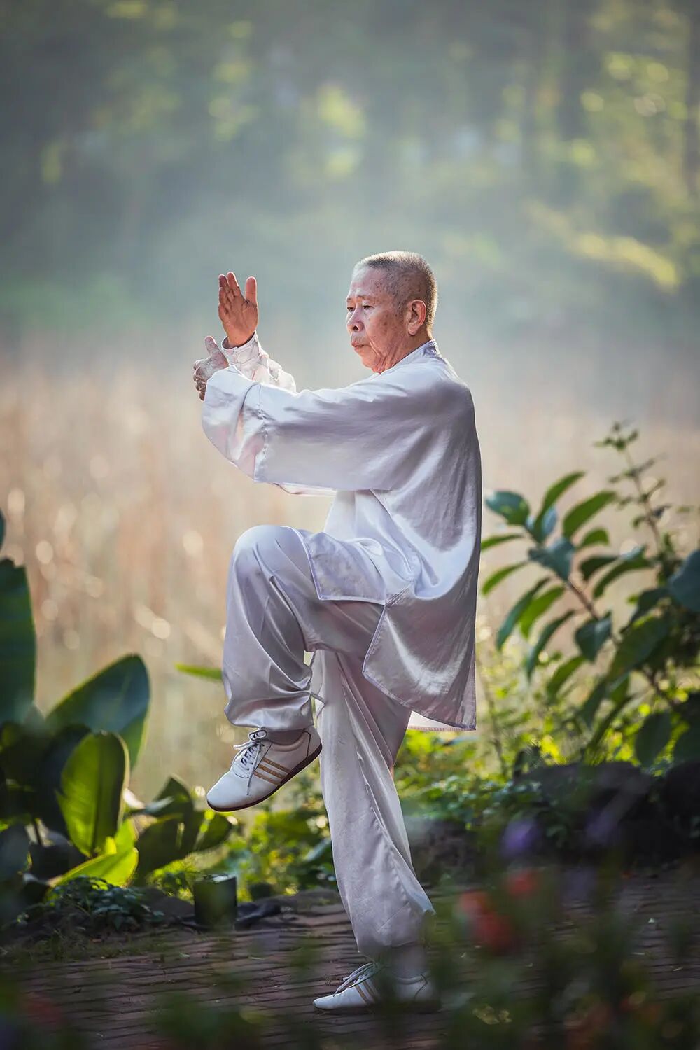 早上8点多去扫公园,看到一个大爷在练太极,精神抖擞,虎虎生威,用长焦抓拍了几张。然后和大爷聊了一会,得知大爷今年71,身体倍儿棒,吃嘛嘛香,每天早上来公园练太极。我们互加了微信,挑了这张最满意的发给了大爷,大爷也很喜欢。后期提亮了一下人物,略微压暗了背景,其他的基本没动。