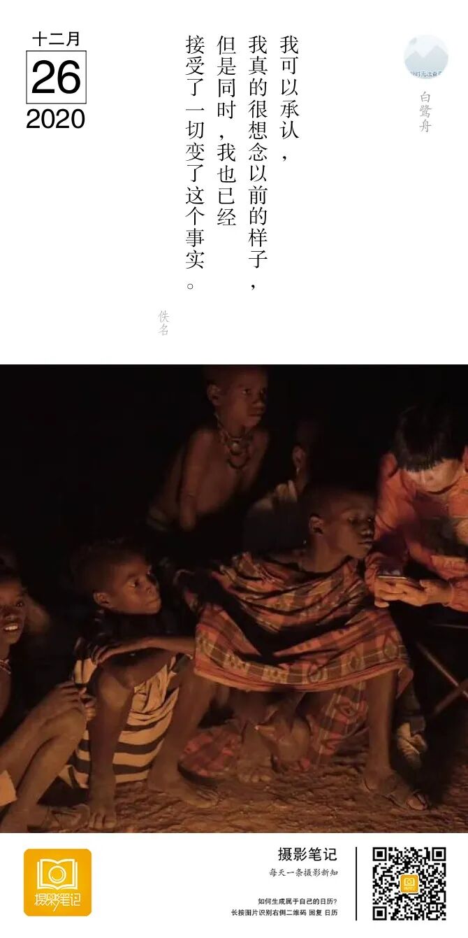 这张照片是在埃塞俄比亚omo河谷拍的,那天正好号称本世纪最大的月全食2018年7月28日,天气状况非常好,能看到完整的过程,不过由于设备限制,我用肉眼观测了下,也没拍照片。这张照片晚上我们围着篝火,同行的人看着手机,引来部落里很多小朋友来围观,抬头看到这个瞬间觉得场景不错,85定焦焦距差那么一点,把曝光控制了一下,其实晚上不减曝光容易过曝,管他三七二十一,抬手先打了一张,主要问题在于构图比较局促,往后退一两步可能会更好,把右边一个人物脚拍全可能更好,但是又怕这一瞬间下一秒就没了,果然,最后只能选了这张。