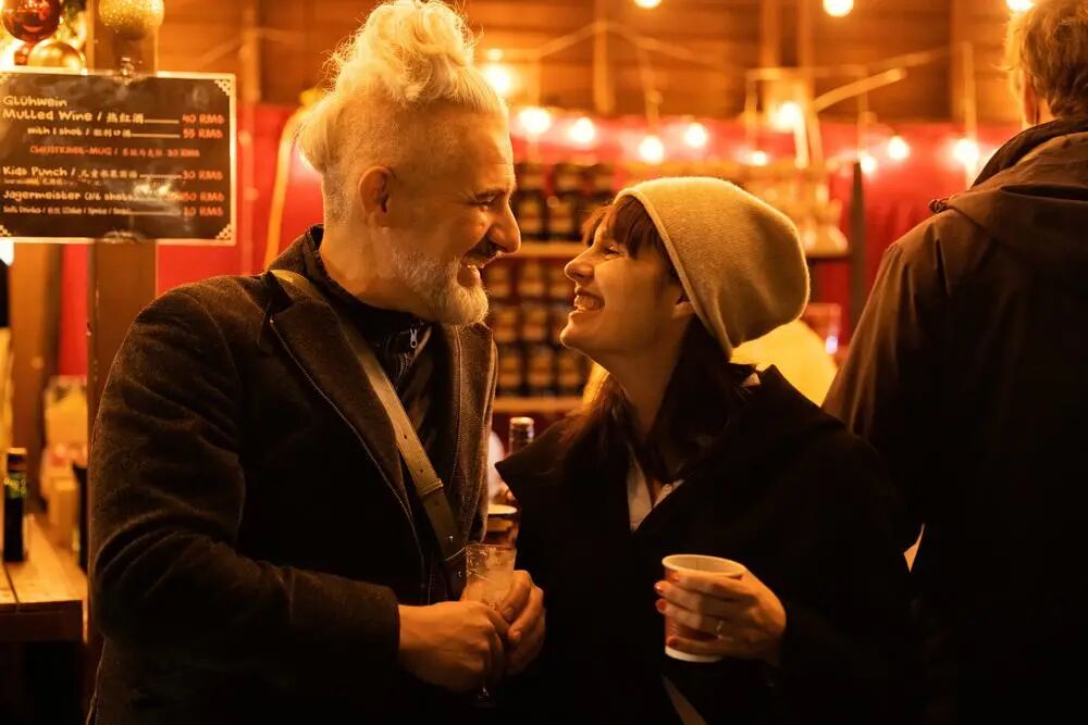 圣诞市集里刚接吻完的情侣,接吻ing的也拍了(第2张),还是更喜欢这张的表情,70200镜头的70端拍的,取景有点大了,拍的时候很想盲退一两步,但是人太多怕踩到别人