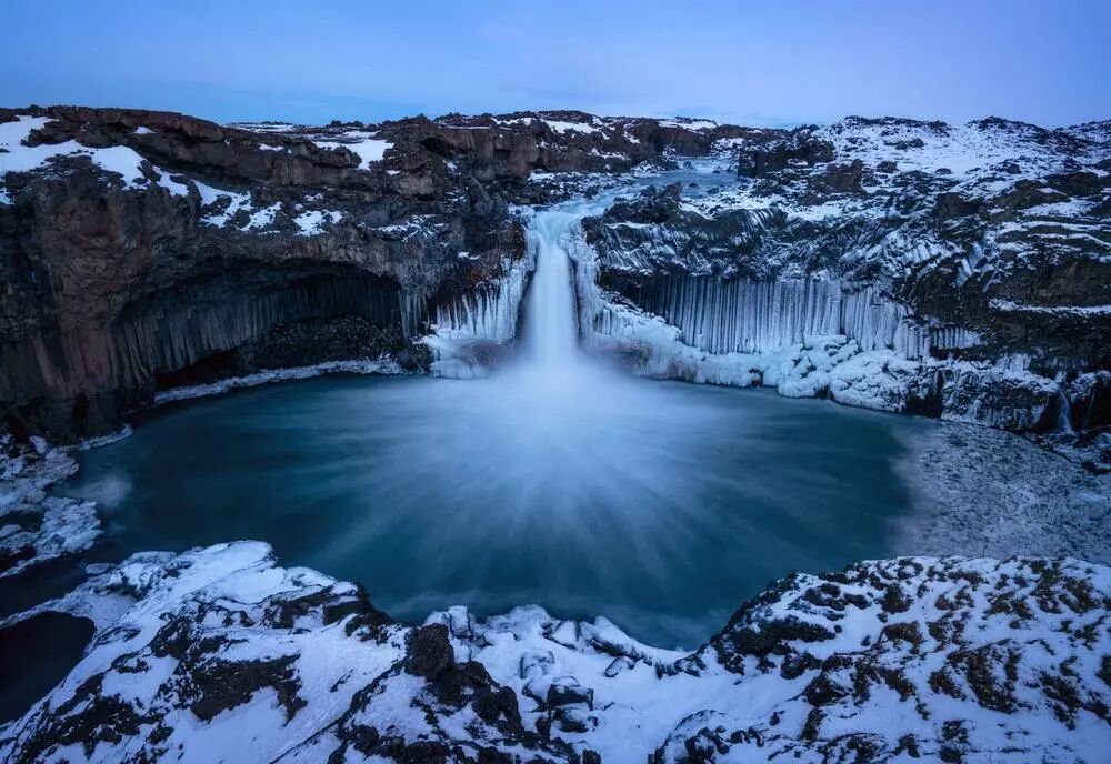 从公路徒步3公里,来到领略这个孤独又奇特的瀑布,两边的地形和岩石纹理非常对称,左边是一个风口,所以将水汽吹到了右侧,右侧才会结冰。本来想下去拍摄,但是太滑了,没敢。以后有机会一定要下去换个角度。