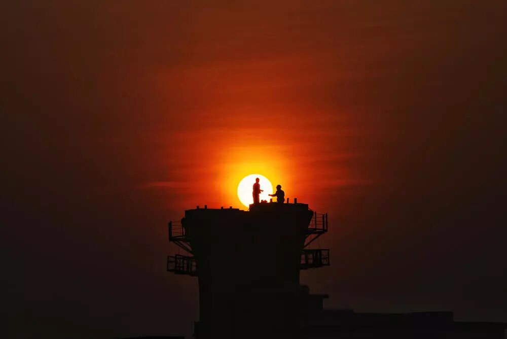 思考过后我觉得,桥墩再取局部,也会让人联想到这里挺高,挺危险,也挺艰难的。把人物的剪影刻画好,应该会更好。所以还是要缩小取景范围。把人和太阳拍大。