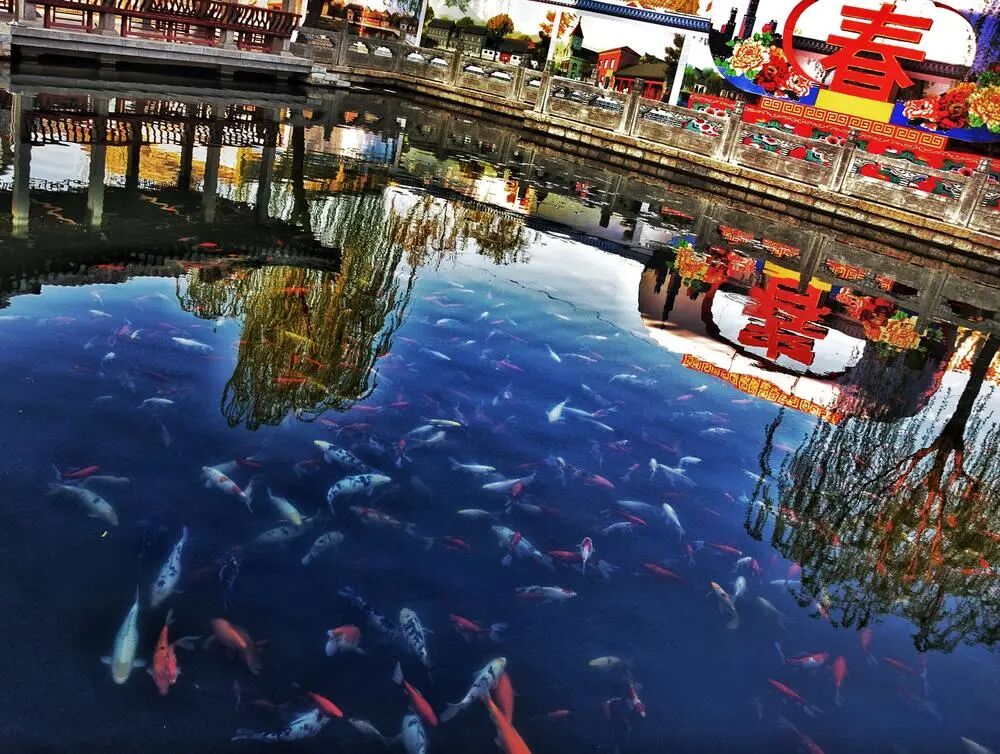 我觉得你的拍摄重点时池子里的鱼。那么就拍鱼就行。如果周边景物有好看的,带上点。但是我现在看着,周围景物真的不怎么样。所以索性就拍鱼就行了。