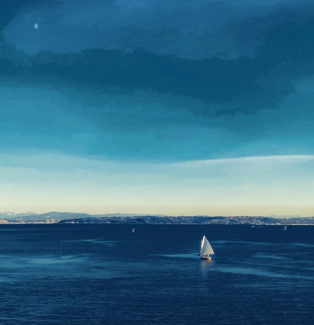 西雅图的渡轮上,看到月亮、船和海平面想拍下来但没带相机,用手机将就了下,后期也就是调整了曝光和调了下色,校长求点评!