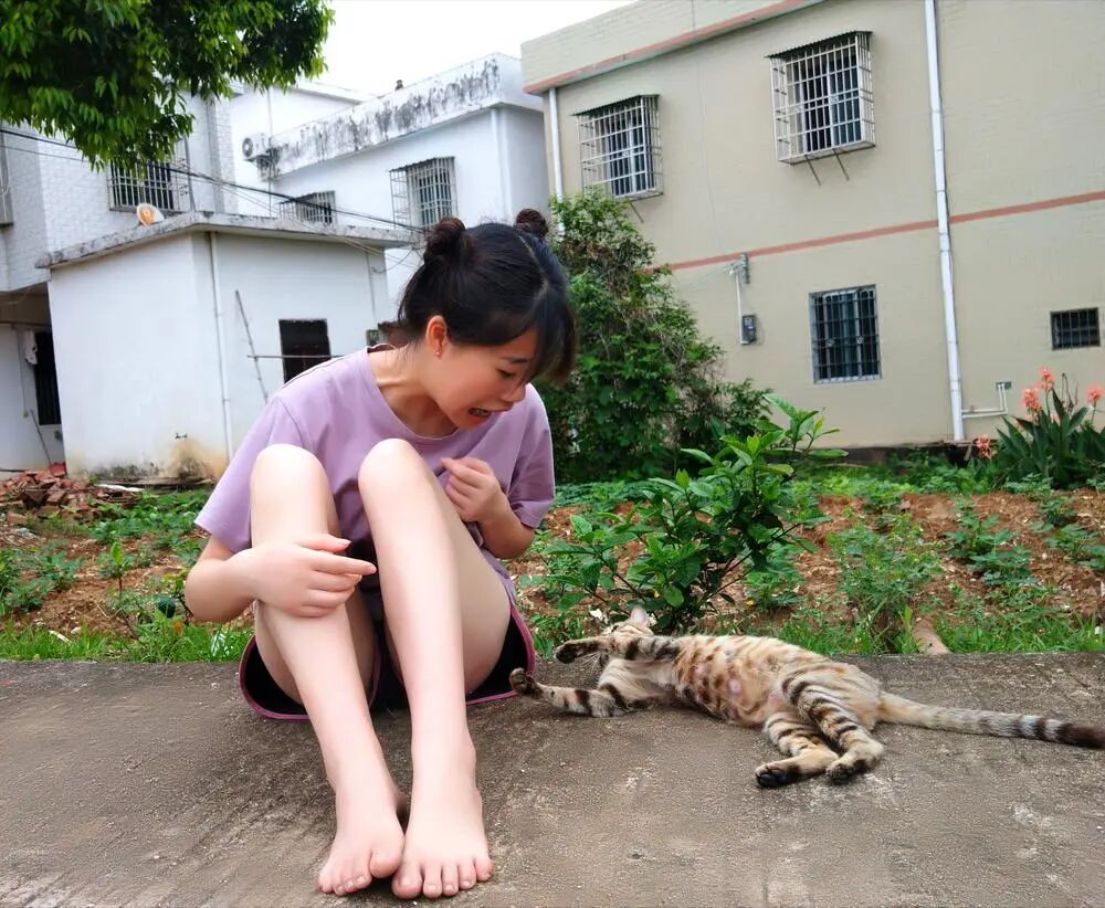 点评:这个姑娘和猫在玩,你拍摄的瞬间是姑娘被猫吓到的一个瞬间。我觉得人物表情真的不错。