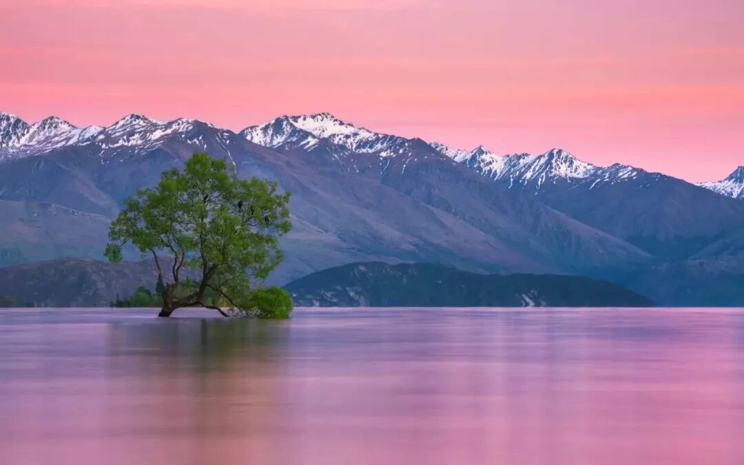 这颗孤独的树可以说是新西兰出镜率最高的树了。你要做的其实就是找角度,把这棵树拍好。如果湖水没有漫过树周围,我们看现在的画面,感觉也是非常容易找到一个角度把树拍好的。