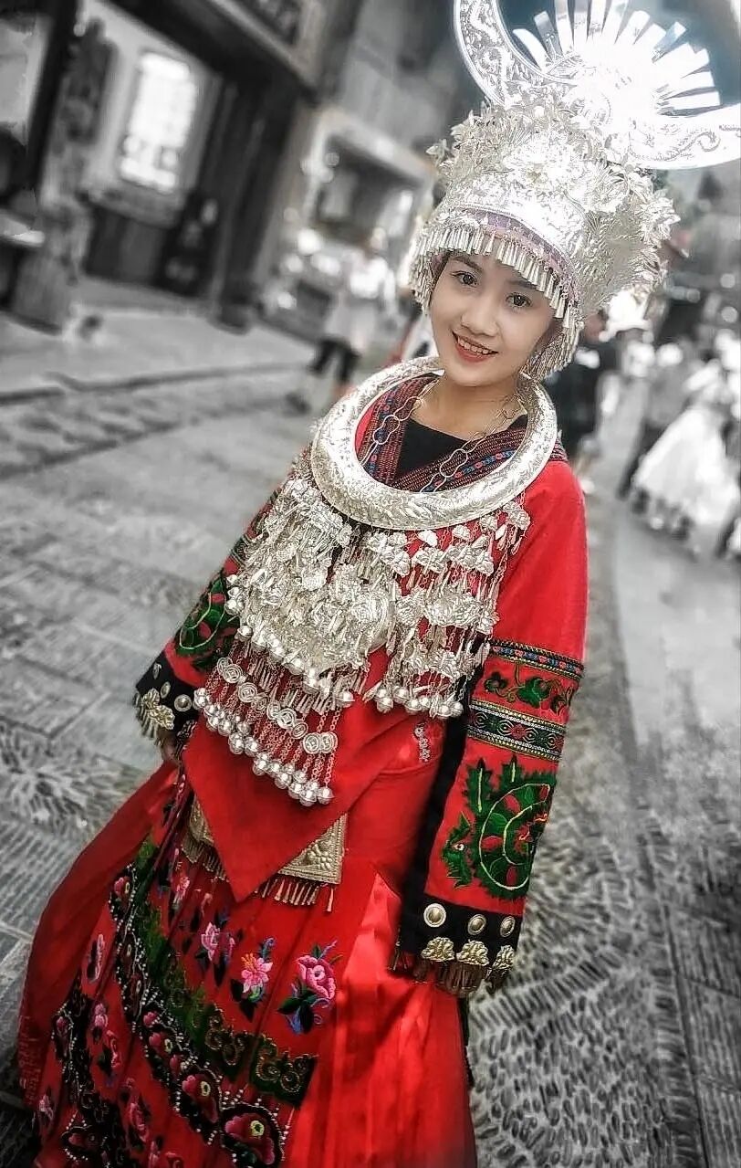 《苗族姑娘》姑娘是个好姑娘(嘻嘻~)在民族自治州的哪个小镇忘记了,这姑娘穿着苗族服饰,大概在拍视频宣传。(这么好的姑娘,这么能轻易放过呢!)“姑娘,你真漂亮,可以给你拍张照吗?”“可以呀”姑娘答应着给我一个转身(民族姑娘就是爽快)就有了这张照片。后期做了背景黑白处理,突出主体颜色和人物。头饰放射光太亮过曝,后期技术不够精细(我基本不会后期,也逼着自己事先多思考瞎思考)是不足。