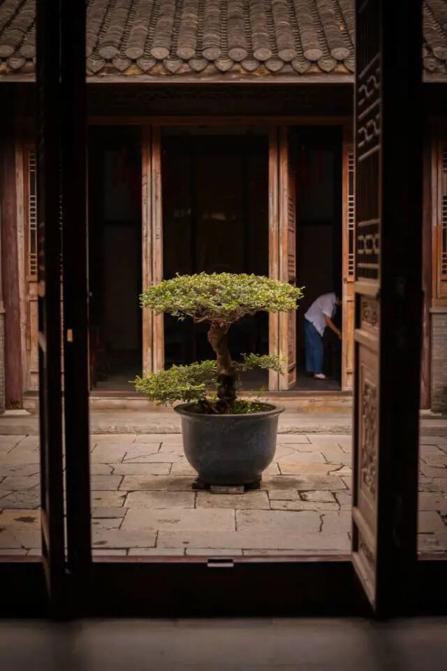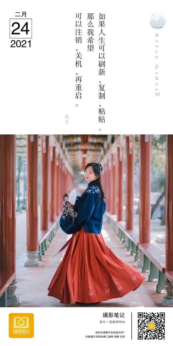 作为古典园林,宝墨园特别适合古装拍摄。以长廊的廊柱作为引导线,使画面的空间感大大加强。同时让老婆旋转带起裙摆营造画面动感。另外就是转圈的时候要注意表情管理