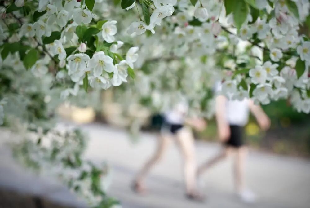 点评:虽然对焦在了花中,但是显然虚化掉的两个人的腿也是重点。繁花遮挡住画面大半,两个人仿佛游走于花海之中。这样来增加一种代入感,如果我是那两个人之一,走在花海中很好。以此来表达画面主体。