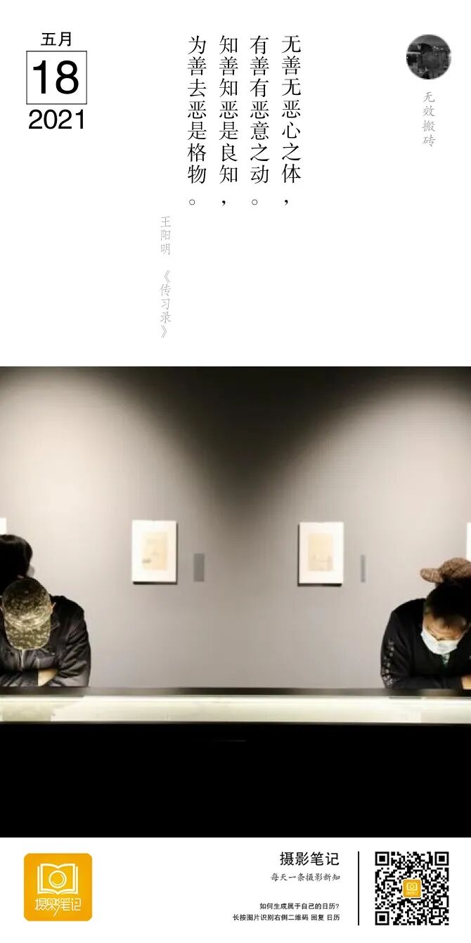 相机是佳能80D,P档直出,5月8号韦尔乔展览开幕时抓拍的作品,画面气氛略微有点诡异,前面两个男士趴在展柜上低头看展,后面两位女士在抬头看墙上的画,都恰好在左右两个射灯打出的光斑里面,仿佛这4个人也是展品的一部分一样,感觉很有意思。感觉不足之处在于前后的人物重叠在一起了,如果能错开或者只留前面或后面的话会更好一些吧。