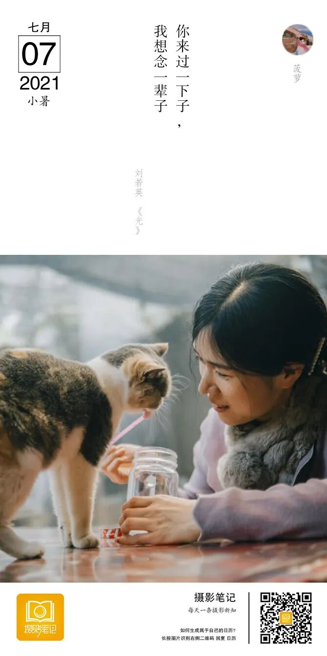 说到构图。你和猫在画面中的位置不好。整体稍微往左一点点。现在感觉你被挤出了画面。