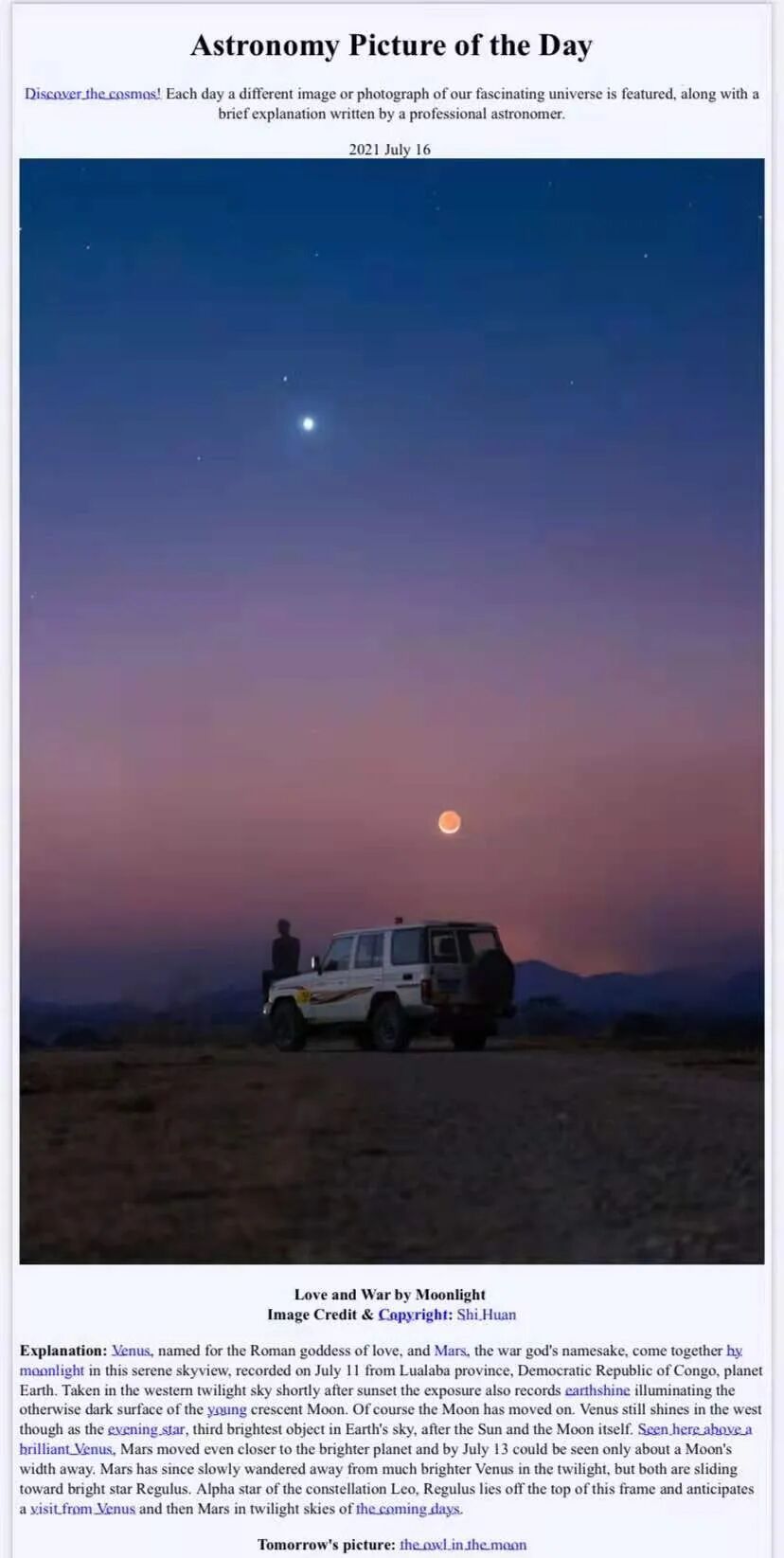 昨天群里一位摄影笔记的学员分享了一个好消息。他的照片被NASA选中。
