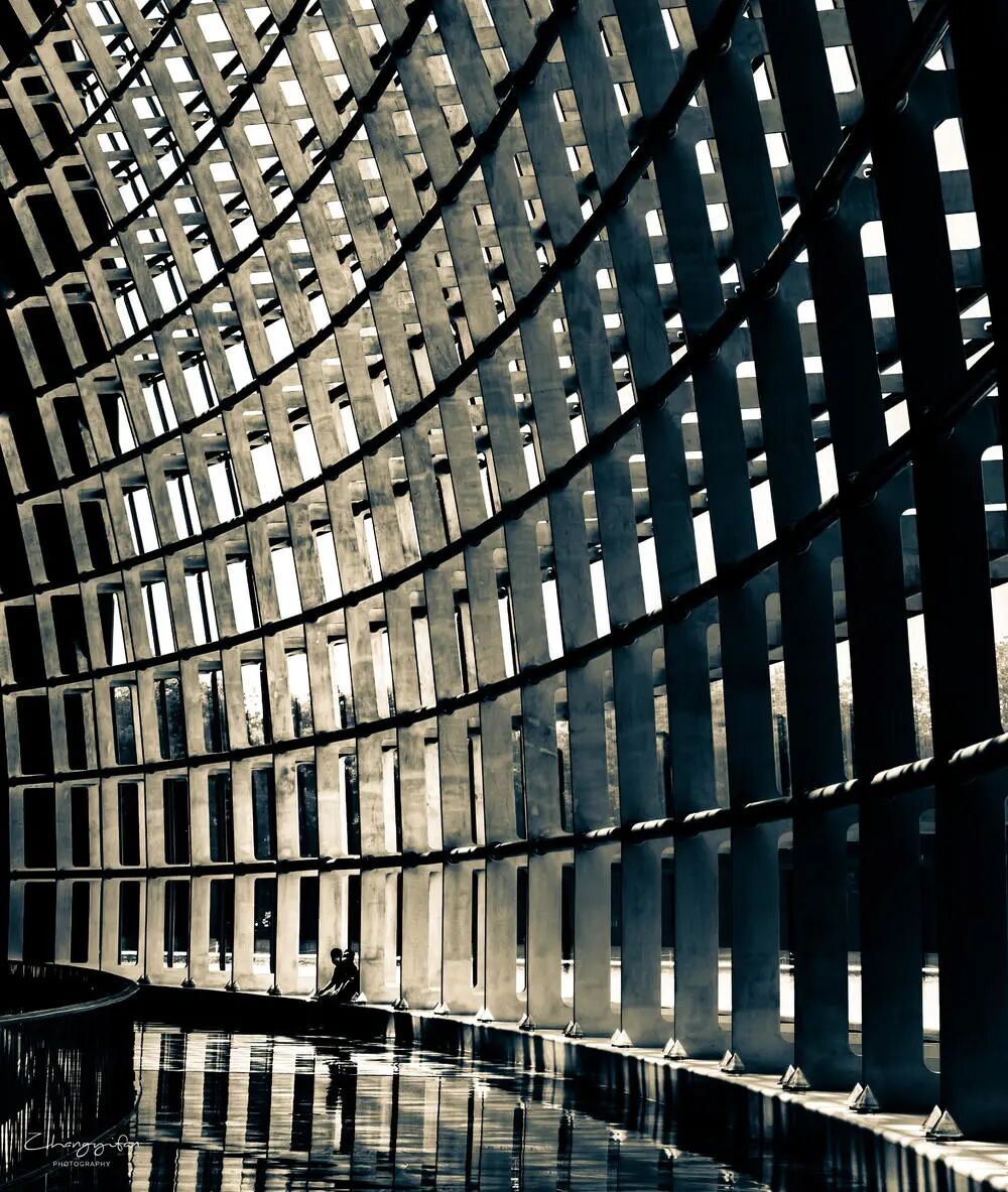 想拍这个格栅的光影 但是苦于没有视觉重点然后就去喝咖啡等 后来有个工作人员坐在那里休息 就赶紧跑到对面拍了一张后期剪裁了下 调整了对比度和阴影突出人物效果不明显 就又加了一个亮度蒙版请校长点评
