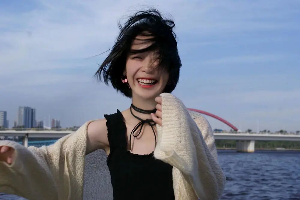 高中和学妹出去玩的随意抓拍,很喜欢这有感染力的笑脸,求点不足。