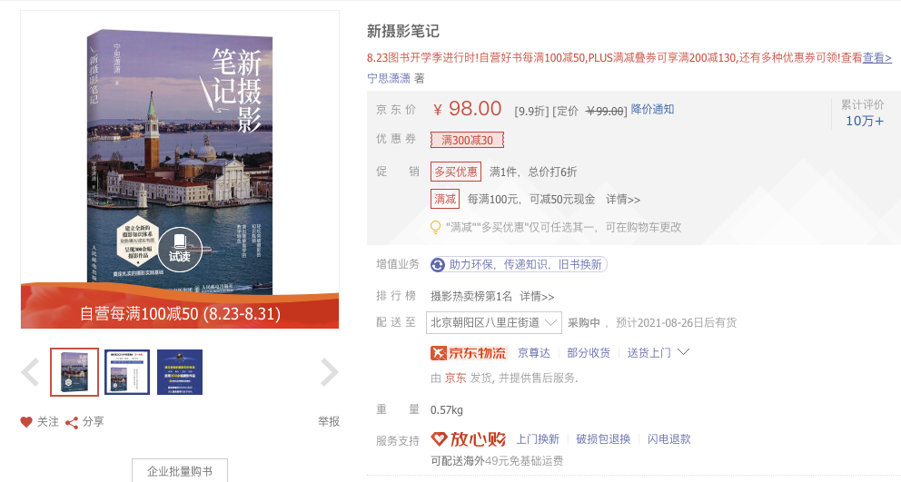 《新摄影笔记》已经在各个电商铺货了。目前签名版差不多售罄了。如果想要签名版的,可以去天猫找博库,以及京东自营下单。因为货差不多了。所以需要调货,可能要多等两天。