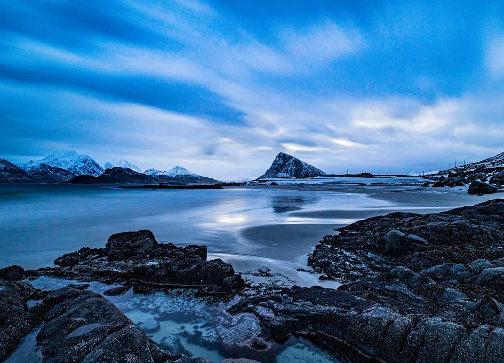 一不小心就把蓝调调成了鬼片,挪威罗弗敦冬日的浅滩,这个蓝调够寒冷吧。