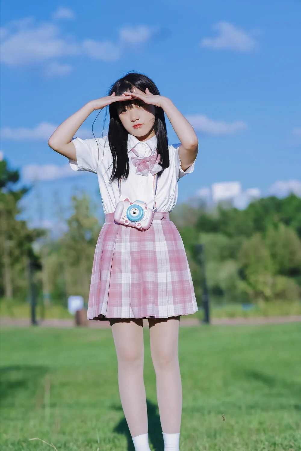 先说取景吧。姑娘是个好姑娘,穿着JK,挂着小相机,说明姑娘还是非常认真对待拍摄的。你呢,肯定就要找个好的景色。这是个公园吧?我觉得避免背景中的那些个牌子啊,垃圾箱什么的还是容易的。虽然虚化了,但是还是明显啊。