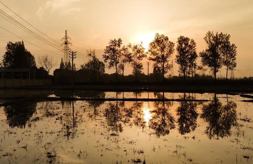 所以你在这里拍摄剪影。可以找一点好的剪影。表现田地的话,可以拍一拍牵着牛的农民伯伯嘛……