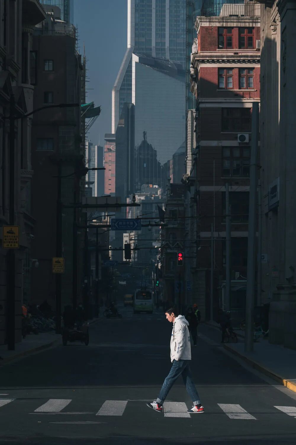 点评:单说没有这个人,背景就不错。一条街道远处是很高的建筑。本身就挺有形式感的。