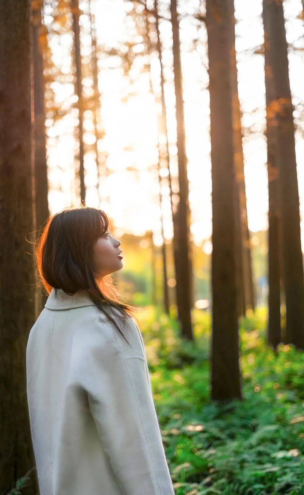 构图来说,其实姑娘往低了放,说得过去。一般来说人物脑袋不要在中线,更不能在画面的下半部分。这张压中线了,显得人很矮。但是为什么说说得过去呢?因为背景是很高的水杉。人矮其实反而正常了。