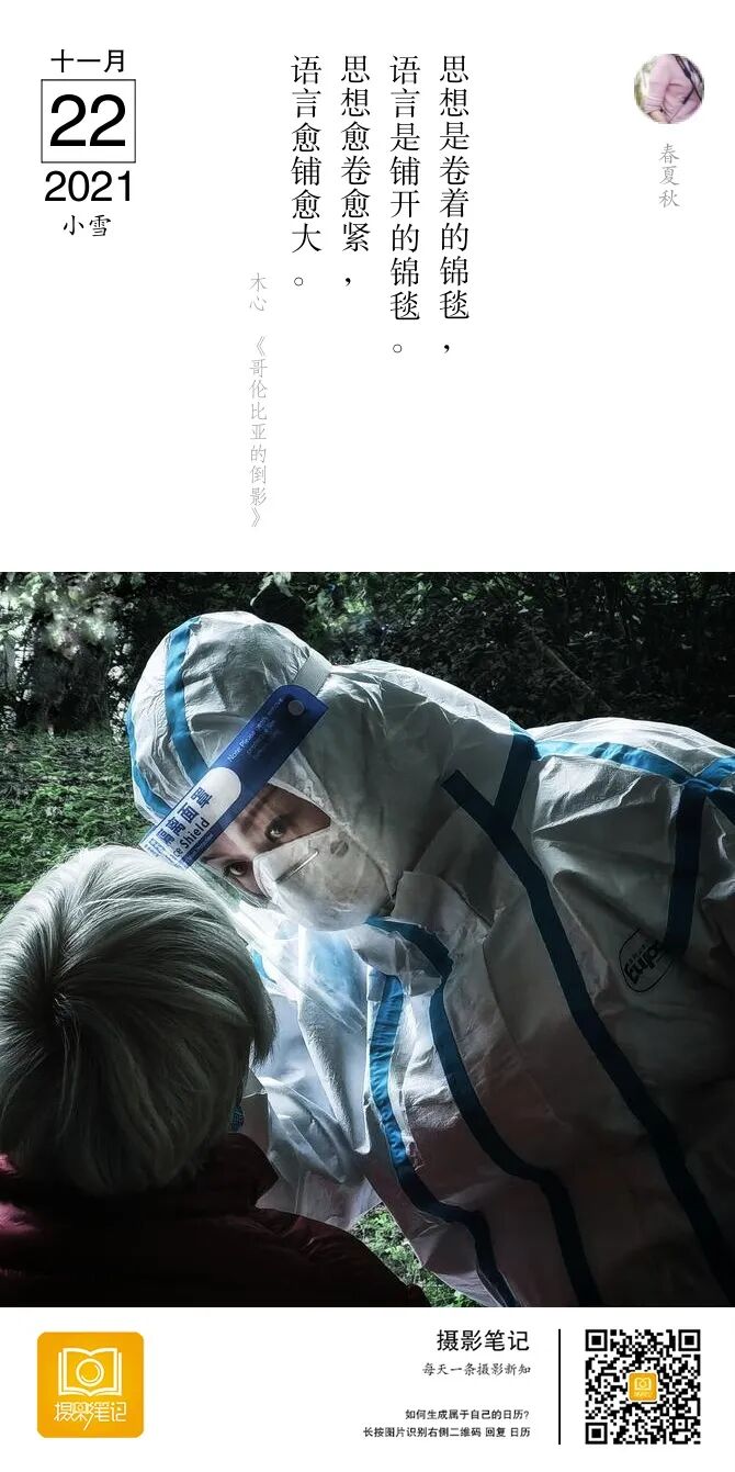 这张照片,场景很明确,就是一个检测核酸的事件。然后姑娘的眼神非常专注,而且坚定。这个不但有传统意义上的美,背后那种给我们带来的安全感会更放大这种美。