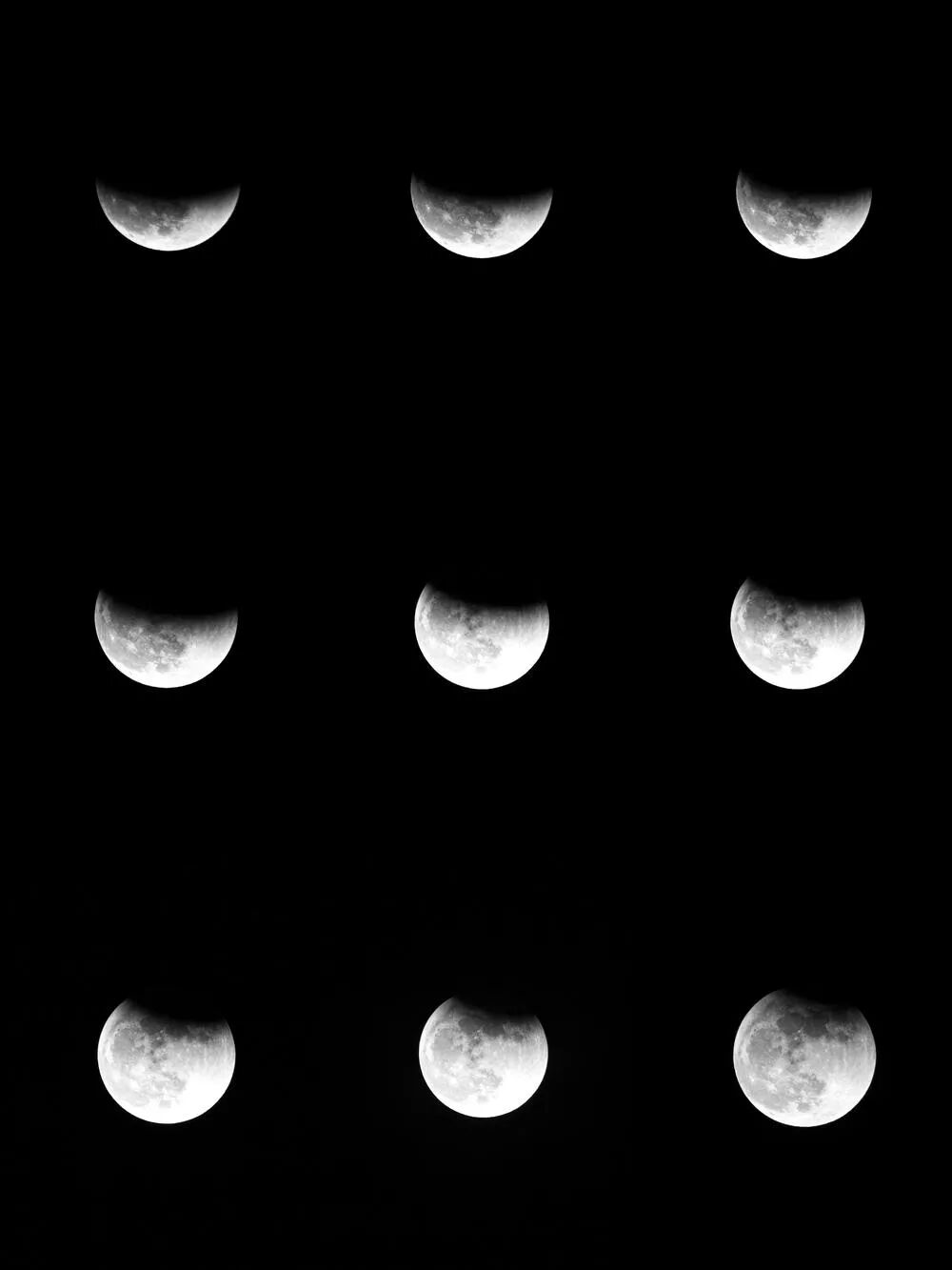 今天的月食,第一次拍,按照今天推文的方法,最后拼起来个九宫格。